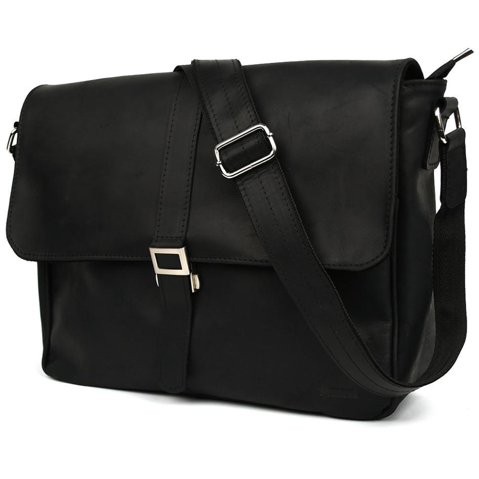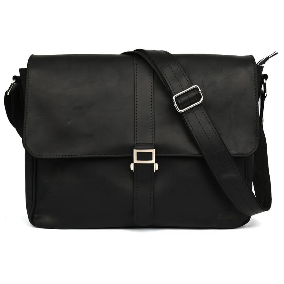 Мужская сумка через плечо из черный крейзи хорс TARWA RA-1046-3md. Для переноски ноутбука до 14" или документов формата А4.