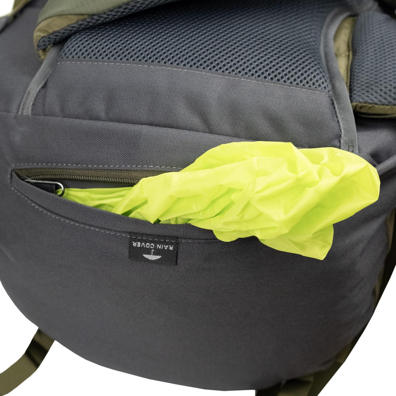 Встроенный чехол от грязи и дождя (rain-cover), находящийся снаружи в специальном кармане на дне рюкзака.