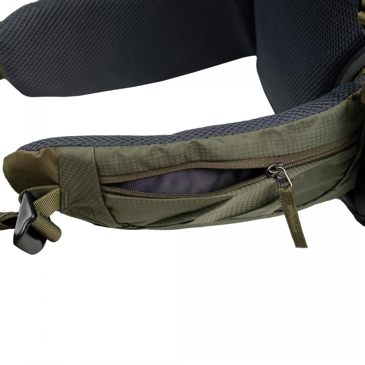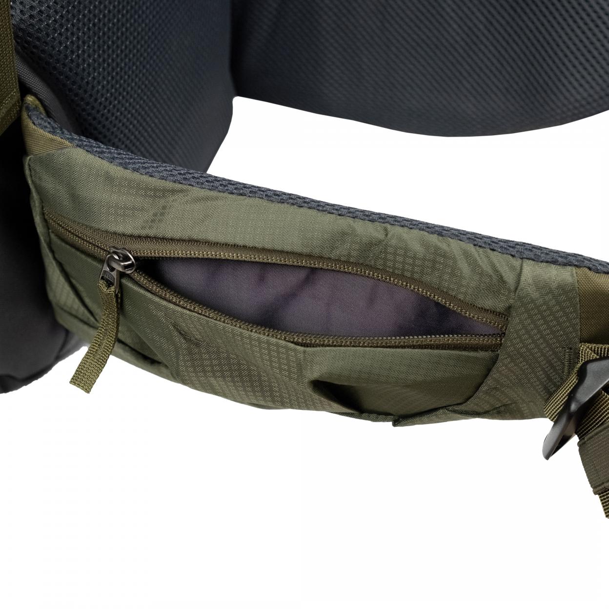 Прочный и легкий алюминиевый каркас перераспределяет нагрузку с плеч и позвоночника на пояс на бедрах.