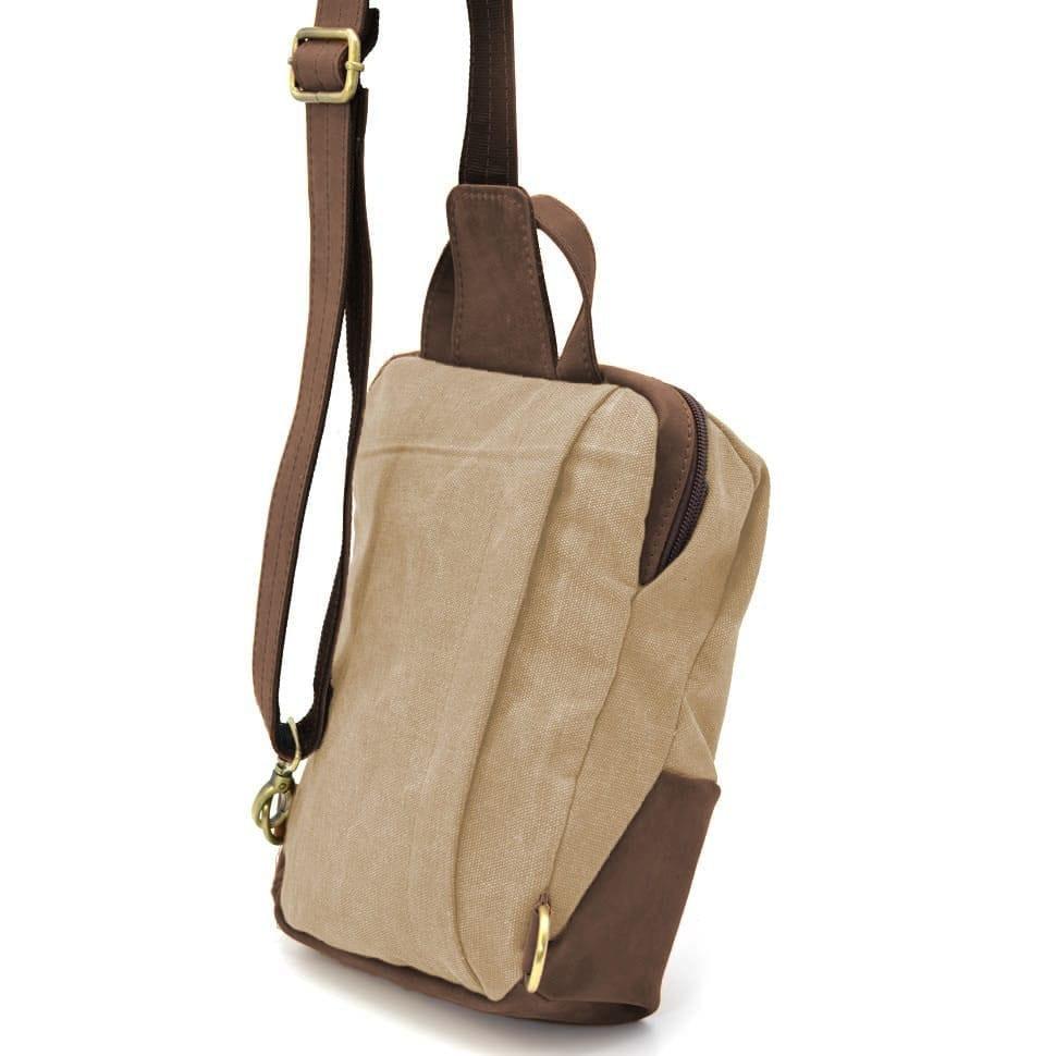 Рюкзак-слинг на одно плечо из кожи и канваса TARWA RСs-1905-3md - небольшая сумка-рюкзак с одной лямкой, которая идеально подходит для перемещения по городу и удобно располагается за спиной либо спереди. Рюкзаки такого типа пользуются популярностью у рыбаков, охотников, туристов, автомобилистов и всех, кто отдает предпочтение активному отдыху.