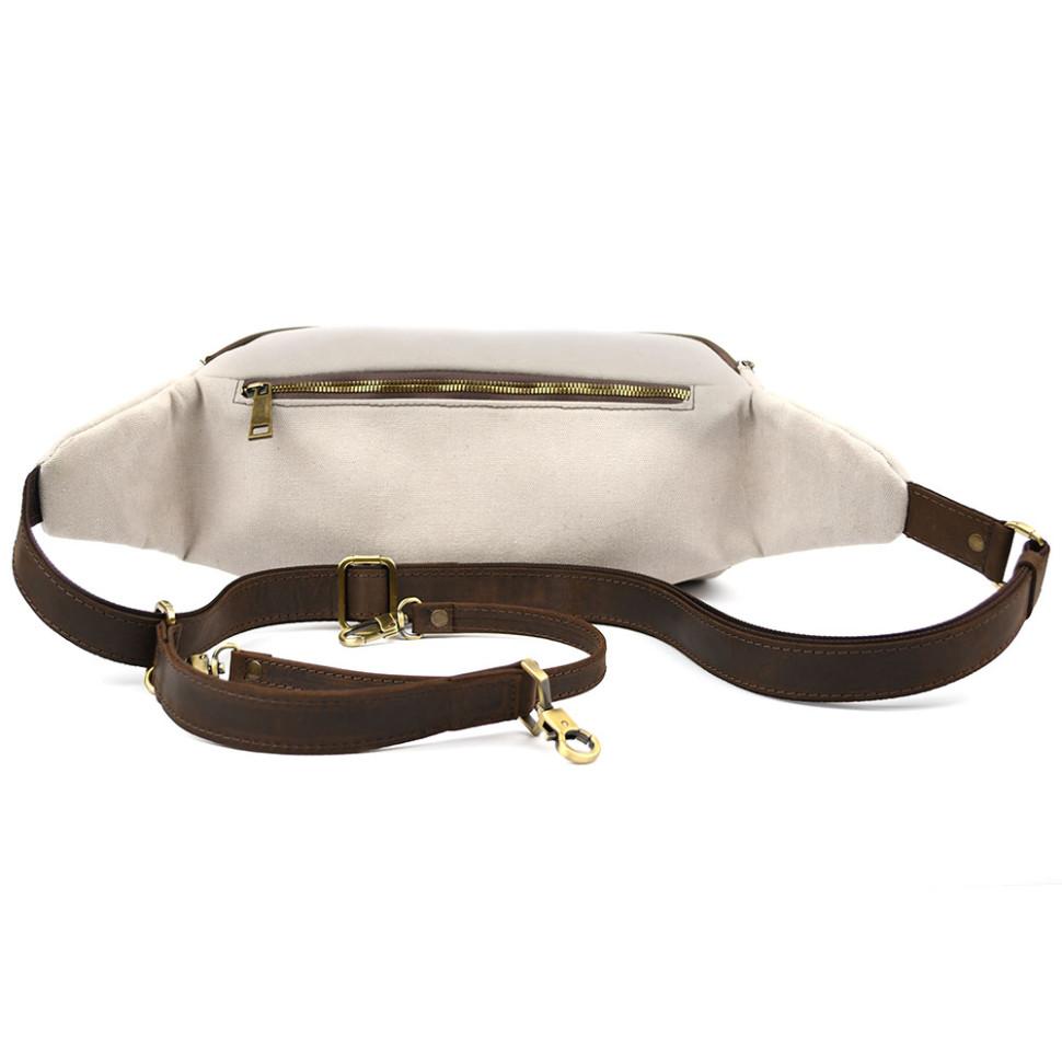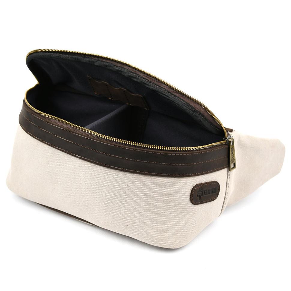 Сумка бананка для фотоаппарата кожа и канвас TARWA RCj-1313-4lx. Забудьте свою старую некрасивую полипропиленовую сумку для фотоаппарата. Теперь все ваши аксессуары помещаются в стильную кожаную бананку или сумку кросс-боди из канвас (парусины) и кожи крейзи хорс