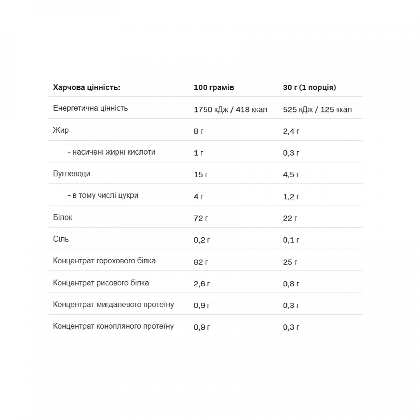 Благодаря отсутствию глютена и лактозы белок риса быстро усваивается, поэтому сразу после еды вы почувствуете легкость, и вам не будут грозить проблемы с газообразованием. Белок риса имеет высокую концентрацию аланина, аргинина, цистеина, метионина и фенилаланина. ALLNUTRITION - Vegan Pea Protein идеально подходит в качестве замены обезжиренной или низкоуглеводной пищи, а также после тренировки - для увеличения мышечной массы и ее регенерации.