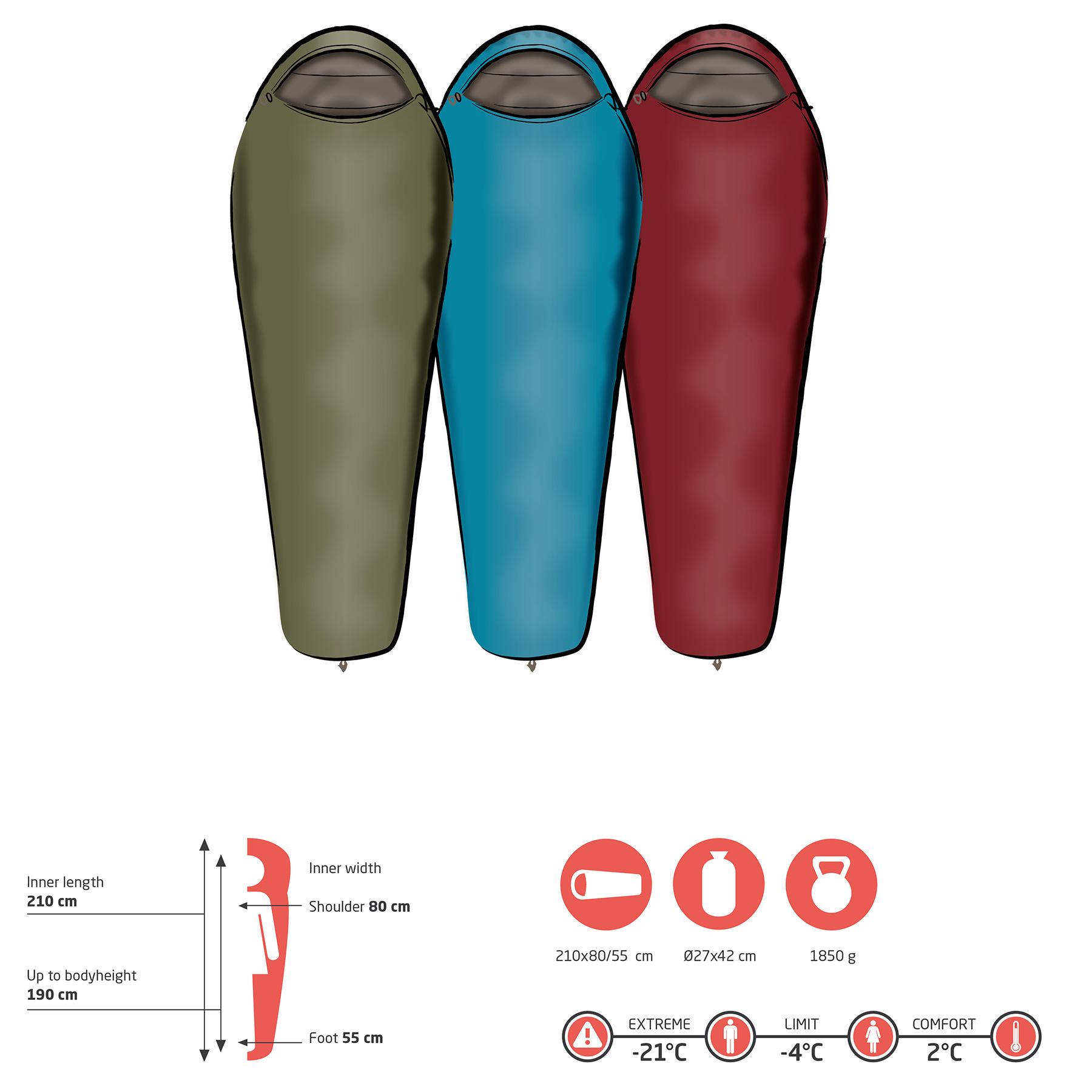 Ряд конструктивних деталей покликані підвищити теплоізоляційні властивості і ізолювати відпочиваючого від холоду, зокрема спеціальний комір із затяжками, що відділяє внутрішній простір від капюшона, утеплюючий борт вздовж блискавки, та форма кокона що повторює контури тіла людини, сприяючи кращому збереженню тепла. Нижня критична температура використання цього спального мішка в екстремальних умовах сягає -21°C. А при перегріві можна розстібнути блискавку знизу або зверху, при цьому зберігаючи тепло в ногах. Зовнішня оболонка спального мішка виконана із матеріалу Polyester Rip-stop - стійкого до порізів та розривів. В якості утеплювача застосований наповнювач з пустотілого мікроволокна Holoow Fiber, що має малу вагу та відмінні термоізоляційні характеристики. Цей утеплювач практично не схильний до "злежування" і забезпечує заявлений температурний режим сну навіть у вологих умовах.