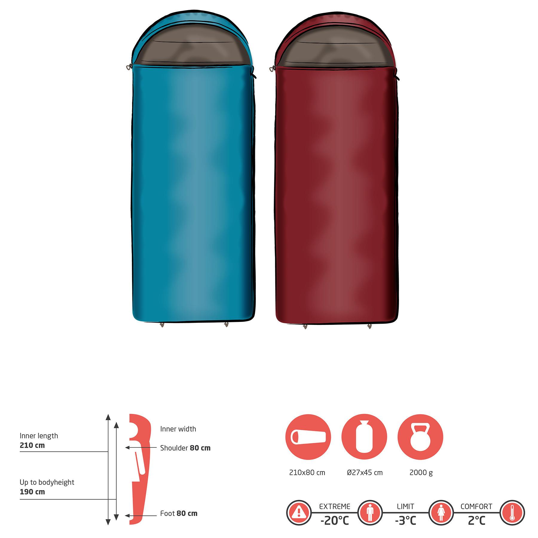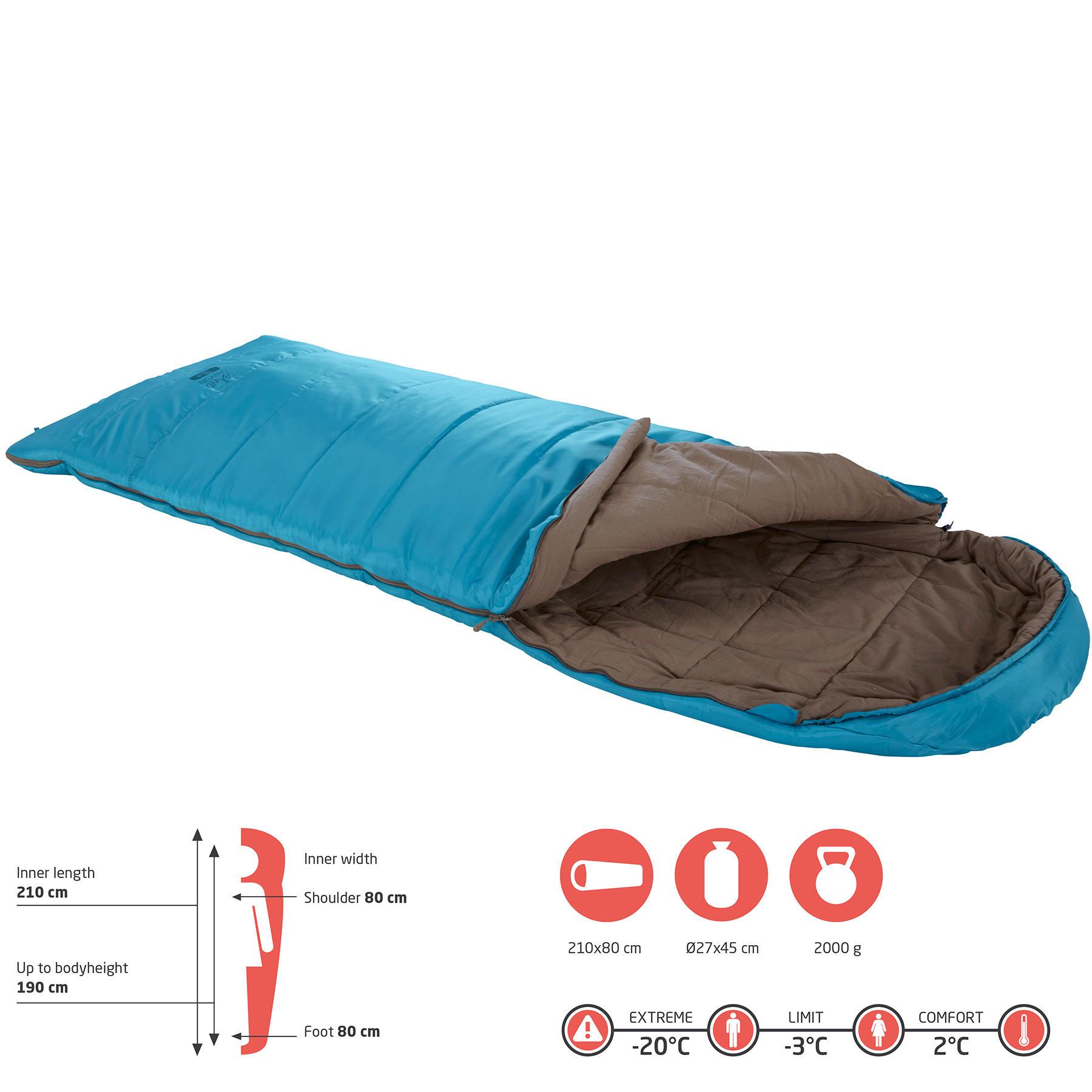 - Спальний мішок має блискавку по всьому периметру, завдяки чому в розстібнутому вигляді перетворюється в двоспальну ковдру шириною 160 см;