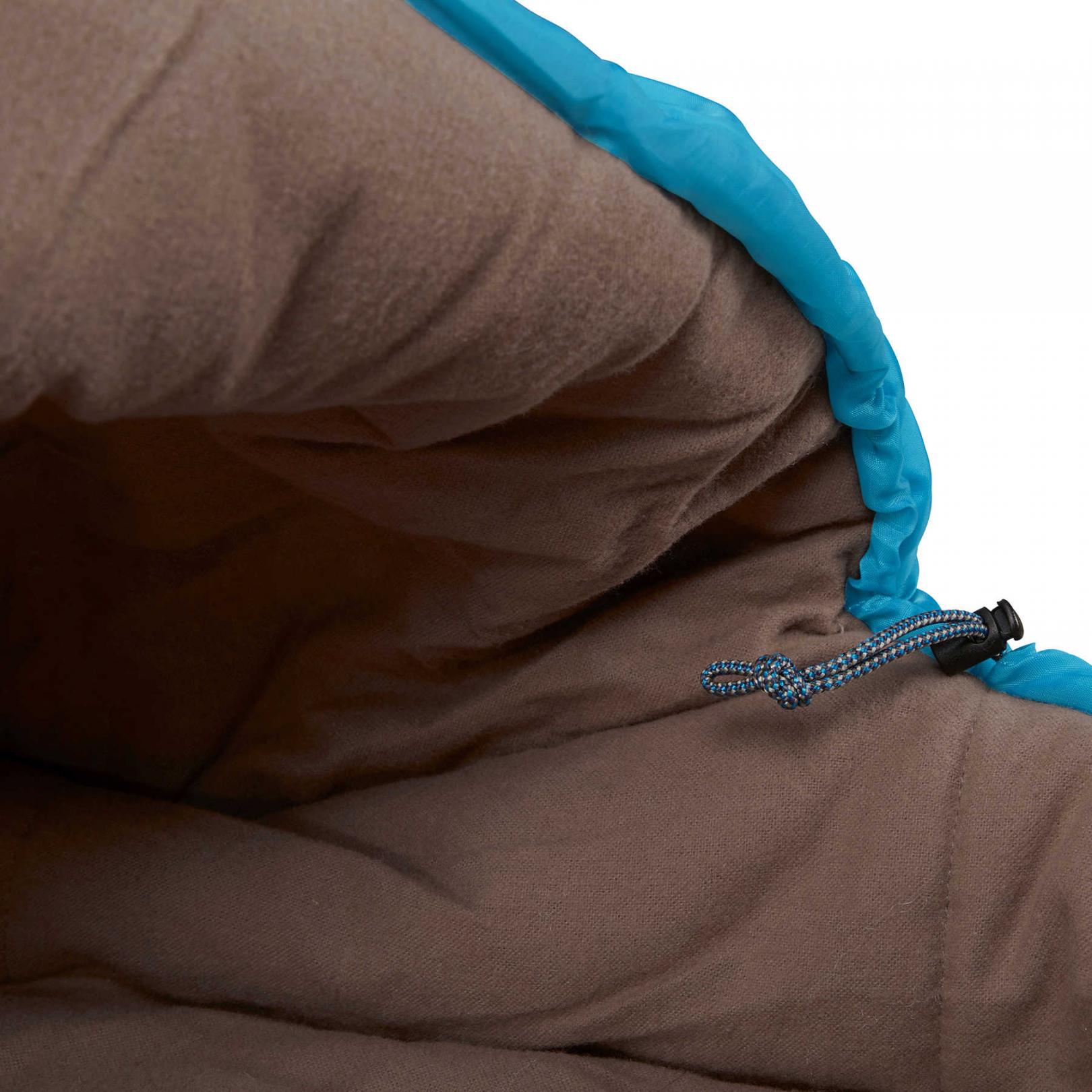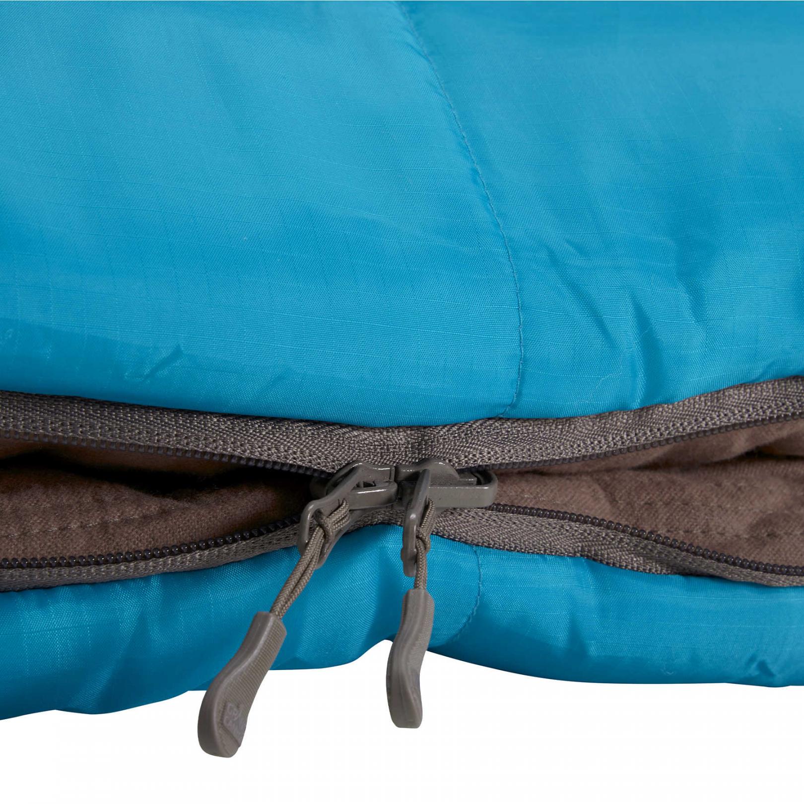 - Блискавка оснащена двома замками, верхній з яких – двосторонній. Таким чином блискавка зручно розстібається і застібається як зовні, так і зсередини, дозволяючи також відкрити нижню частину спального мішка для провітрювання;