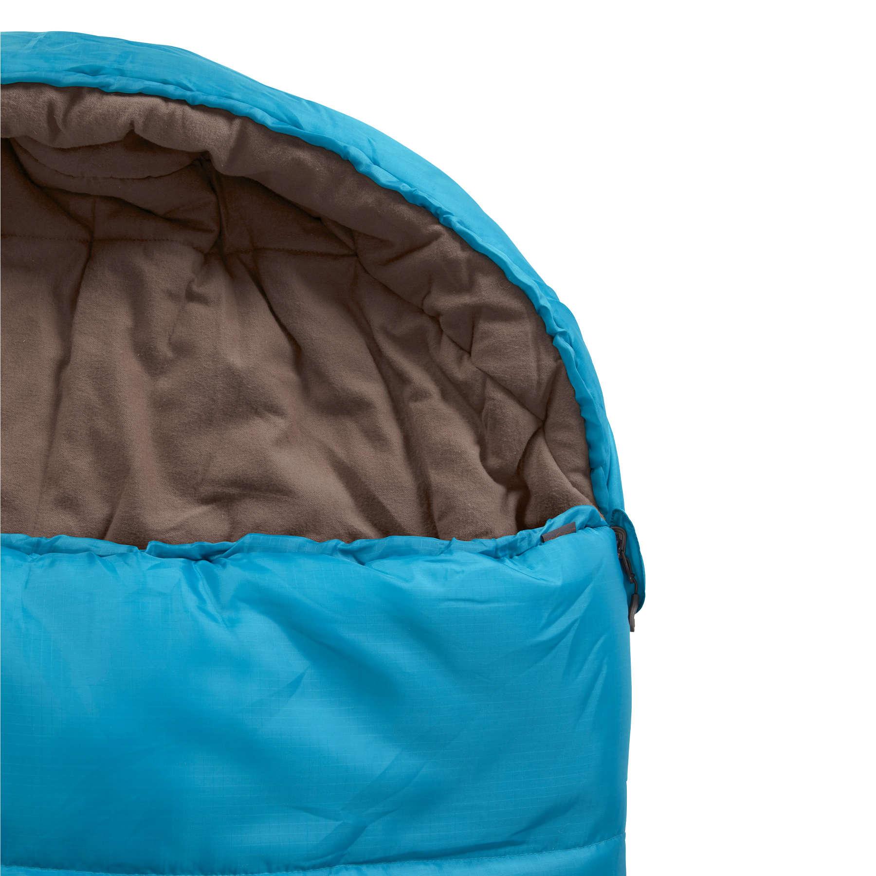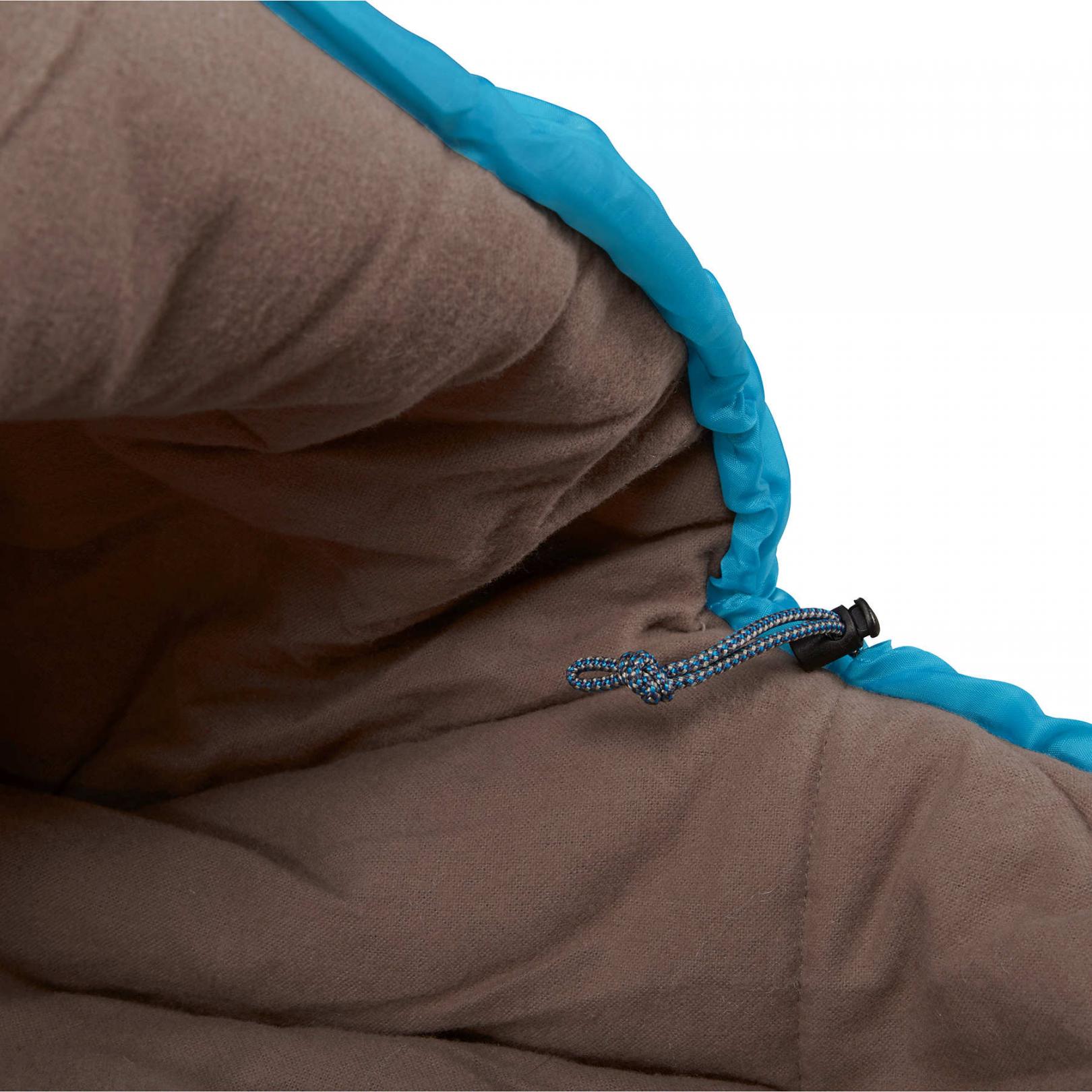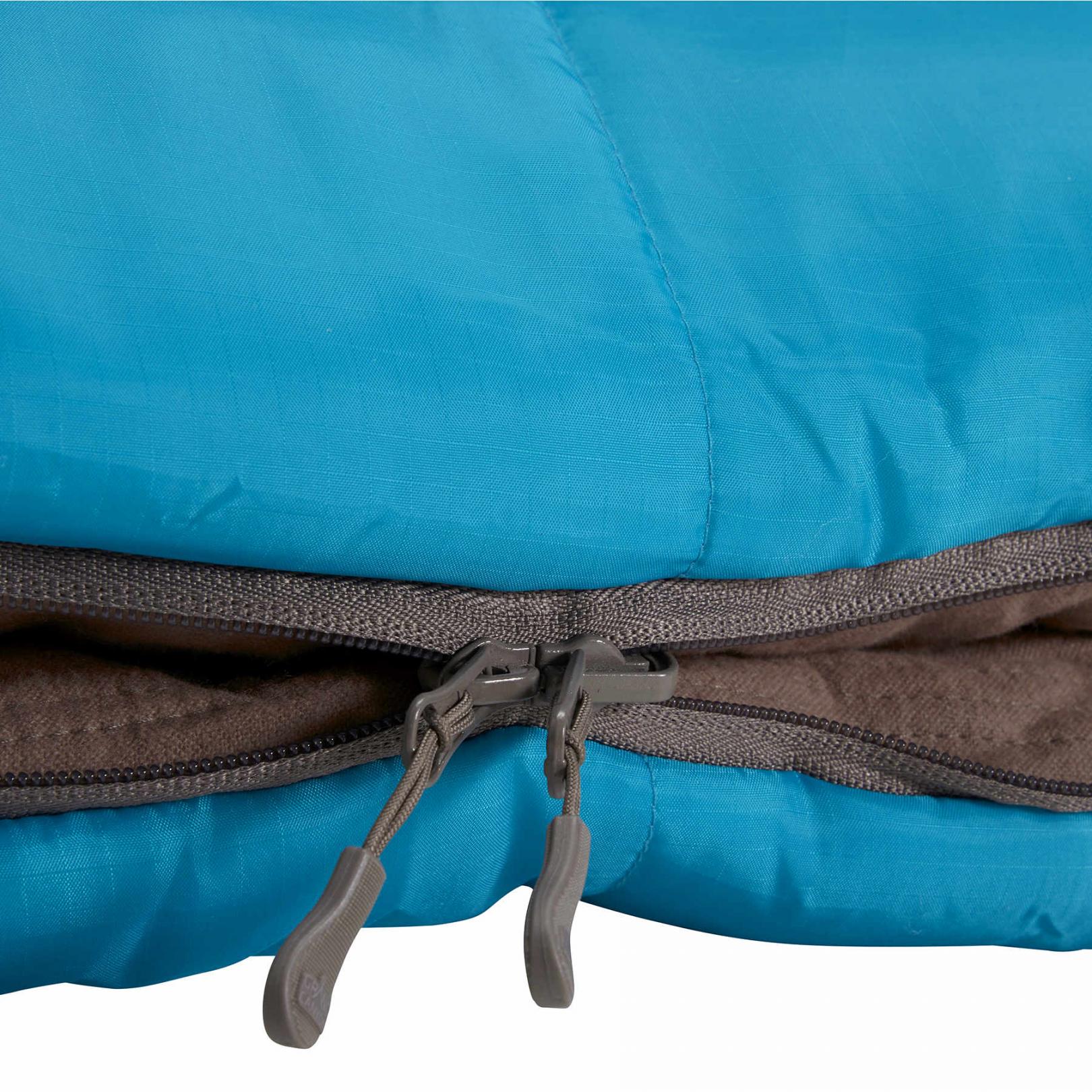 - Блискавка оснащена двома замками, верхній з яких – двосторонній. Таким чином блискавка зручно розстібається і застібається як зовні, так і зсередини, дозволяючи також відкрити нижню частину спального мішка для провітрювання;