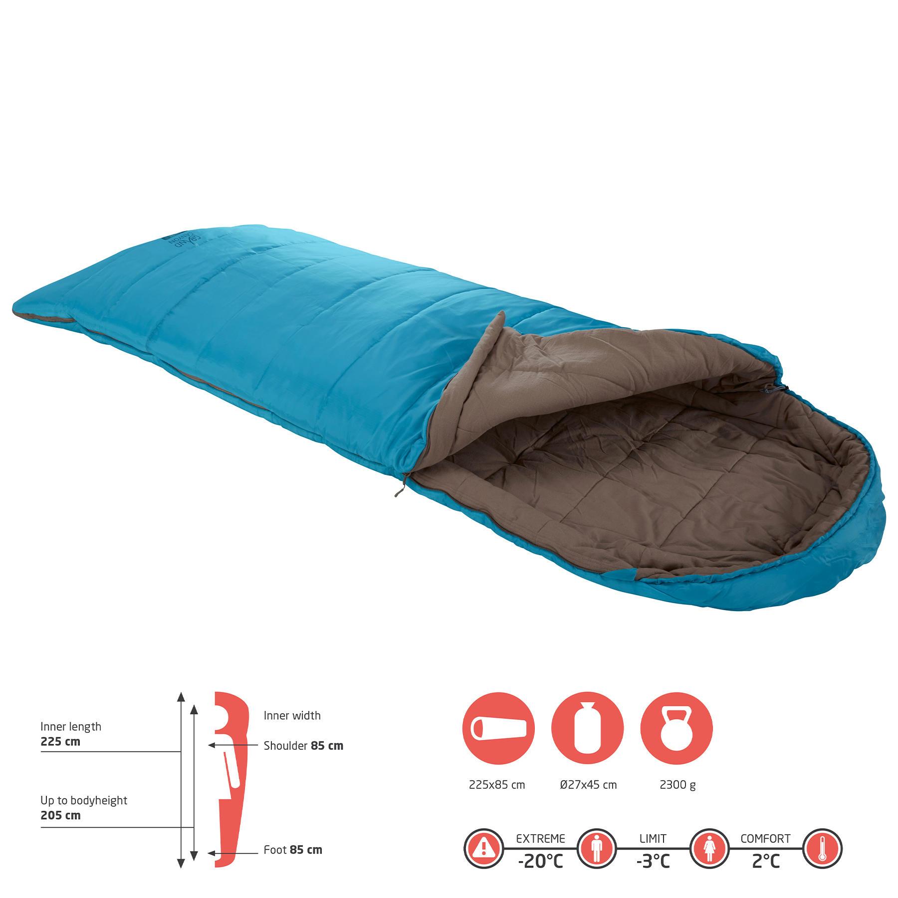 Grand Canyon Utah 205 -3°C Caneel Bay Left це трьохсезонний спальний мішок, в першу чергу призначений для високих користувачів і для туристів, що віддають перевагу більш просторим спальним мішкам, які забезпечують належну свободу рухів під час сну. Його можна використовувати при температурі до -3°C, а екстремальна температура використання -20°C. Більш того, маючи прямокутну форму і блискавку по периметру, дана модель в розстібнутому вигляді дозволить зігрітися 2-3 людям, які використовують його в якості широкої ковдри.