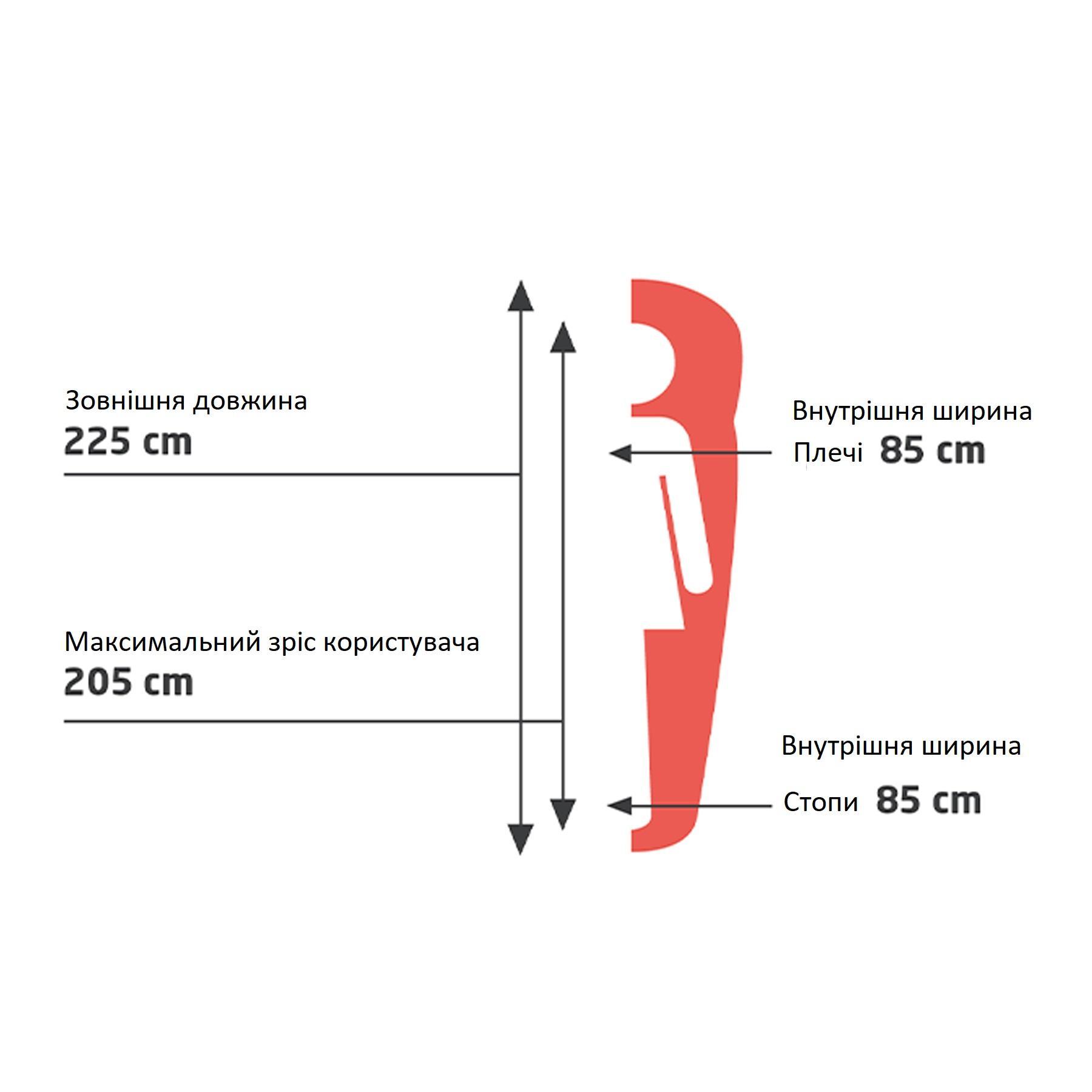 - Розміри (Довжина х Ширина в плечах х Ширина в ногах): 225 x 85 х 85 см