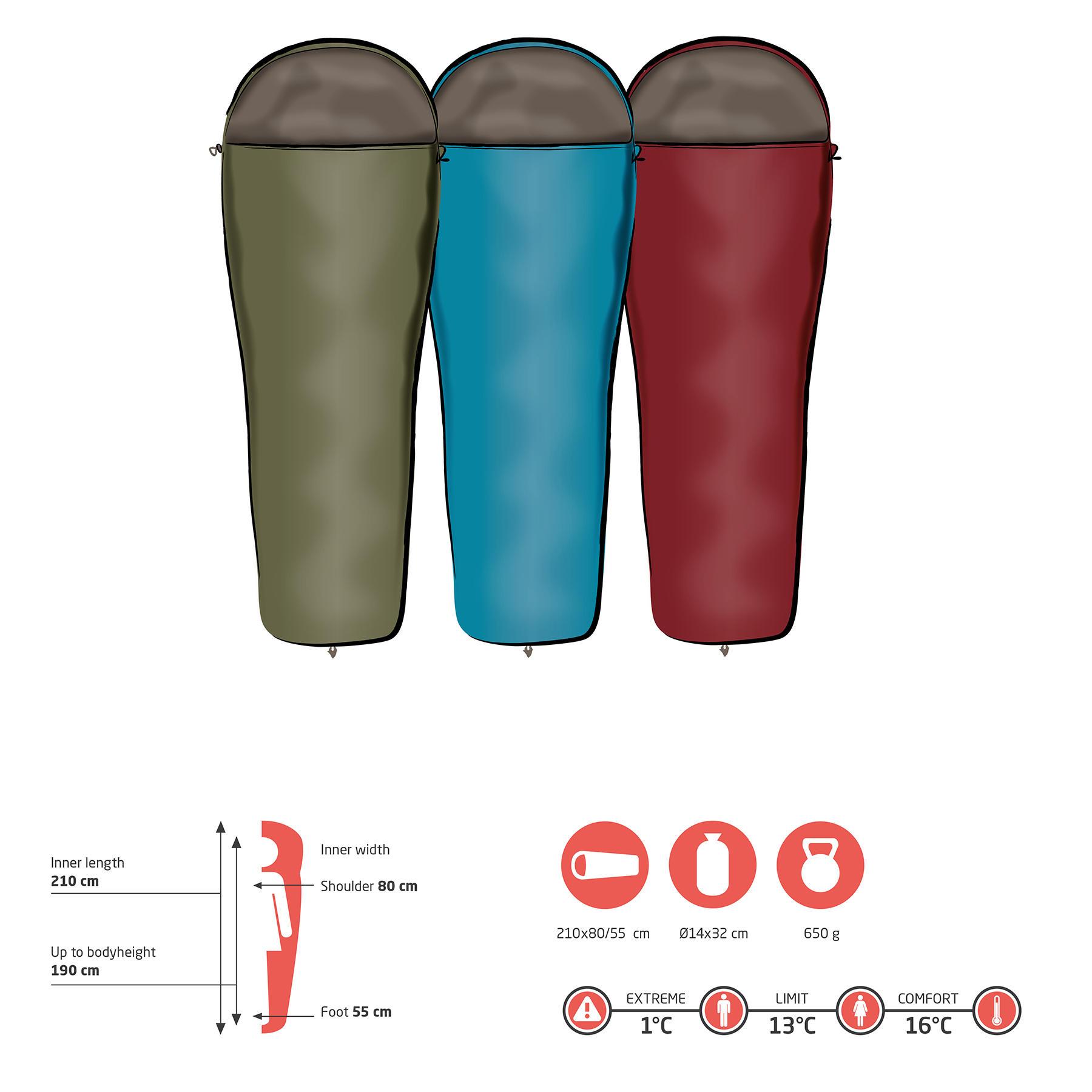 - Наповнювач: Micro Polyester Hollow Fibre (синтетичний утеплювач, який характеризується відмінним співвідношенням теплоізоляційних властивостей до власної ваги, а також має мінімальну залишкову деформацію. Порожні мікроволокна вбирають і відводять вологу на зовнішній матеріал спального мішка.)