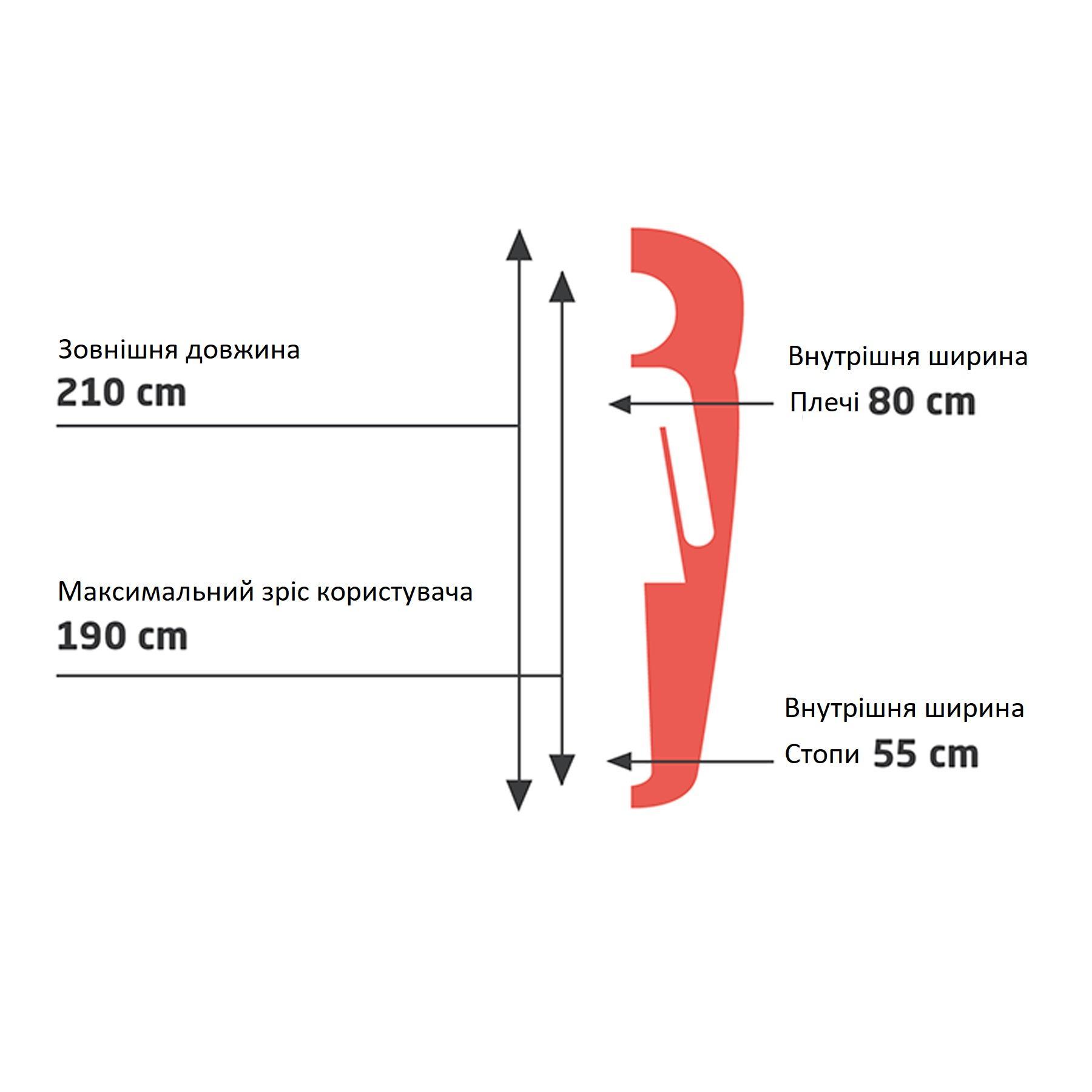 - Розміри (Довжина х Ширина в плечах х Ширина в ногах): 210 x 80 х 55 см