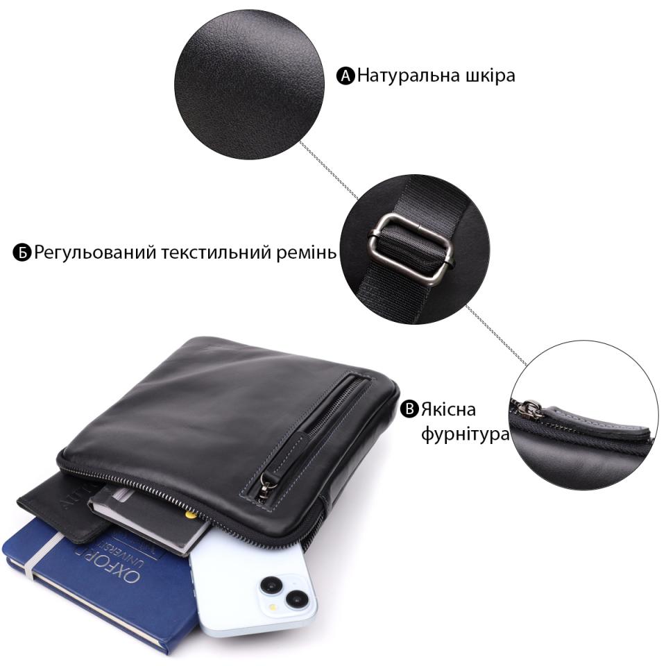 Характеристики: Стильная и практичная мужская сумка на плечо из натуральной гладкой кожи Shvigel 23153 Черный