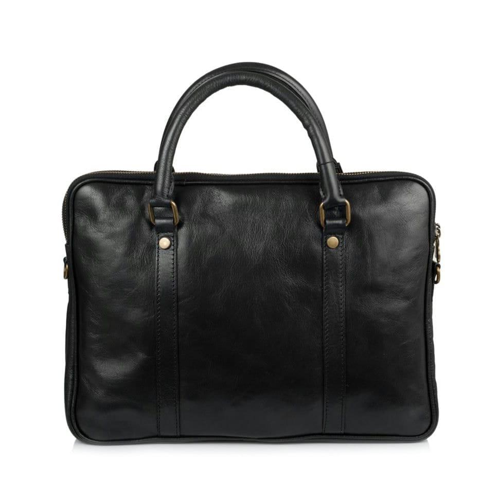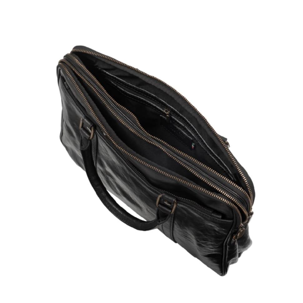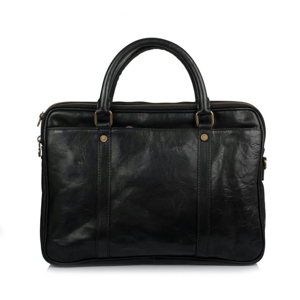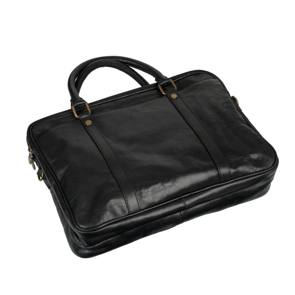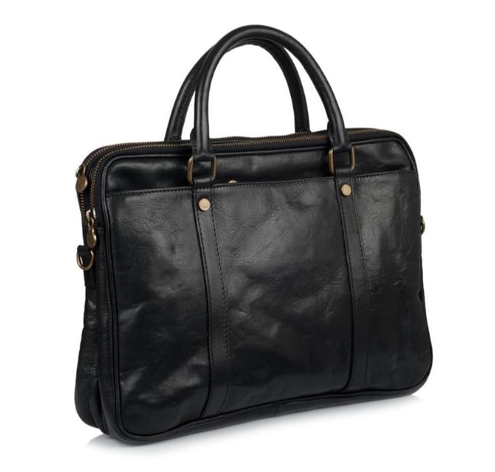 Стильный пошив, универсальность, высокая вместительность мужской кожаной сумки на два отделения 0502 в черной коже растительного дубления