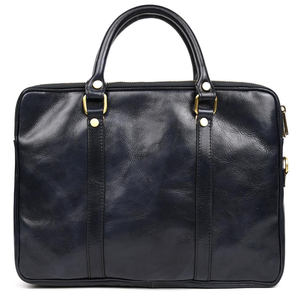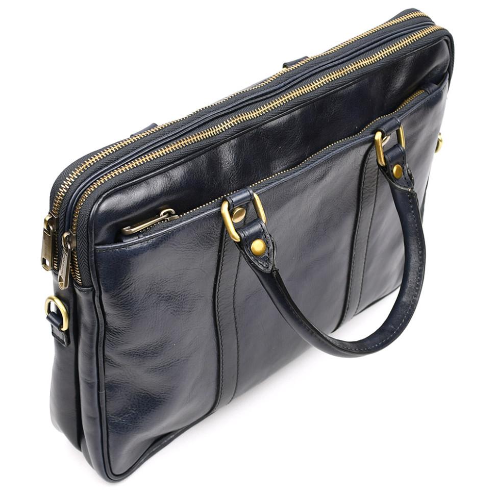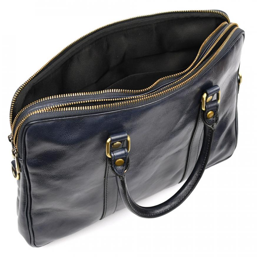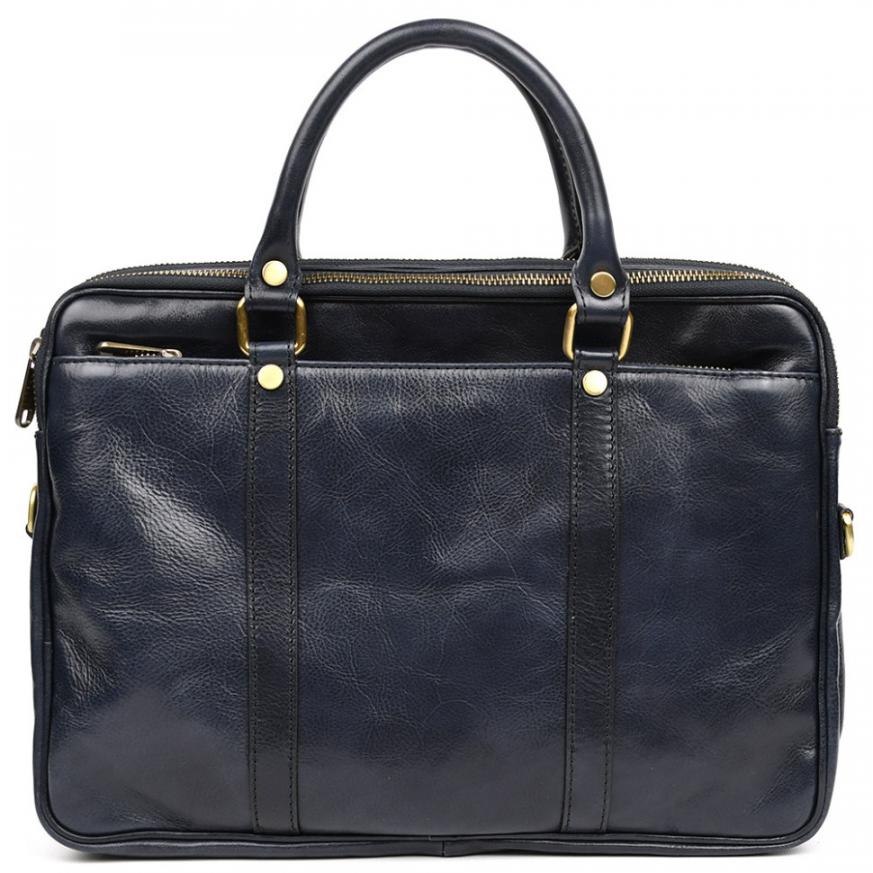 Стильный пошив, универсальность, высокая вместительность мужской кожаной сумки на два отделения 0502 в синей коже растительного дубления