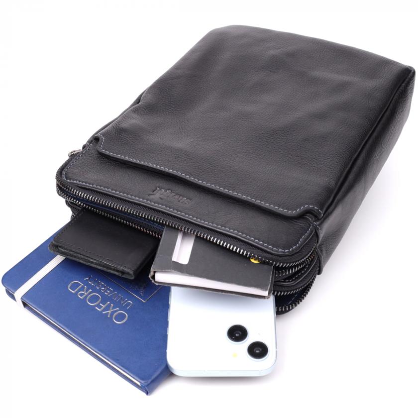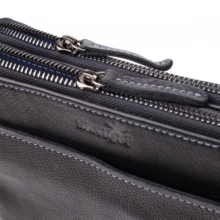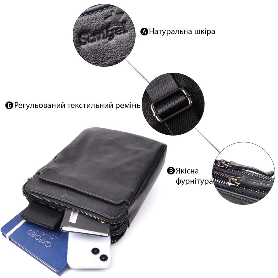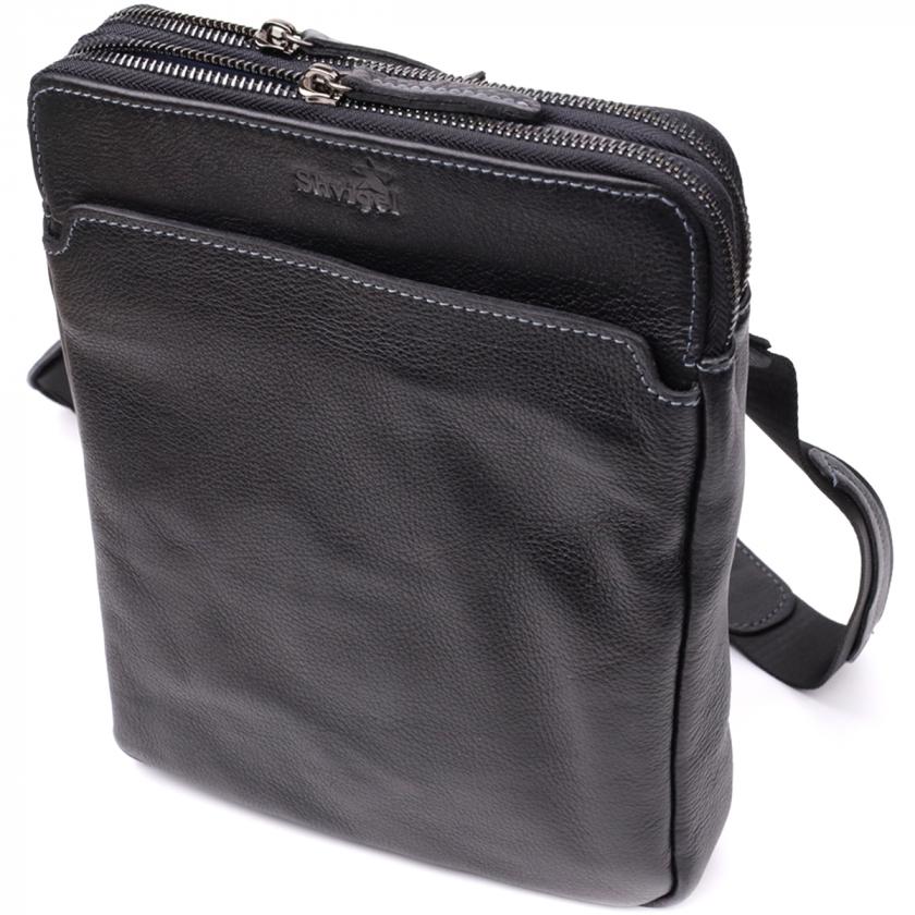 Характеристики: Стильная мужская сумка через плечо из мелкозернистой натуральной кожи Shvigel 20869_1 Черный