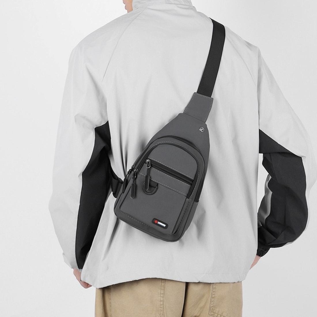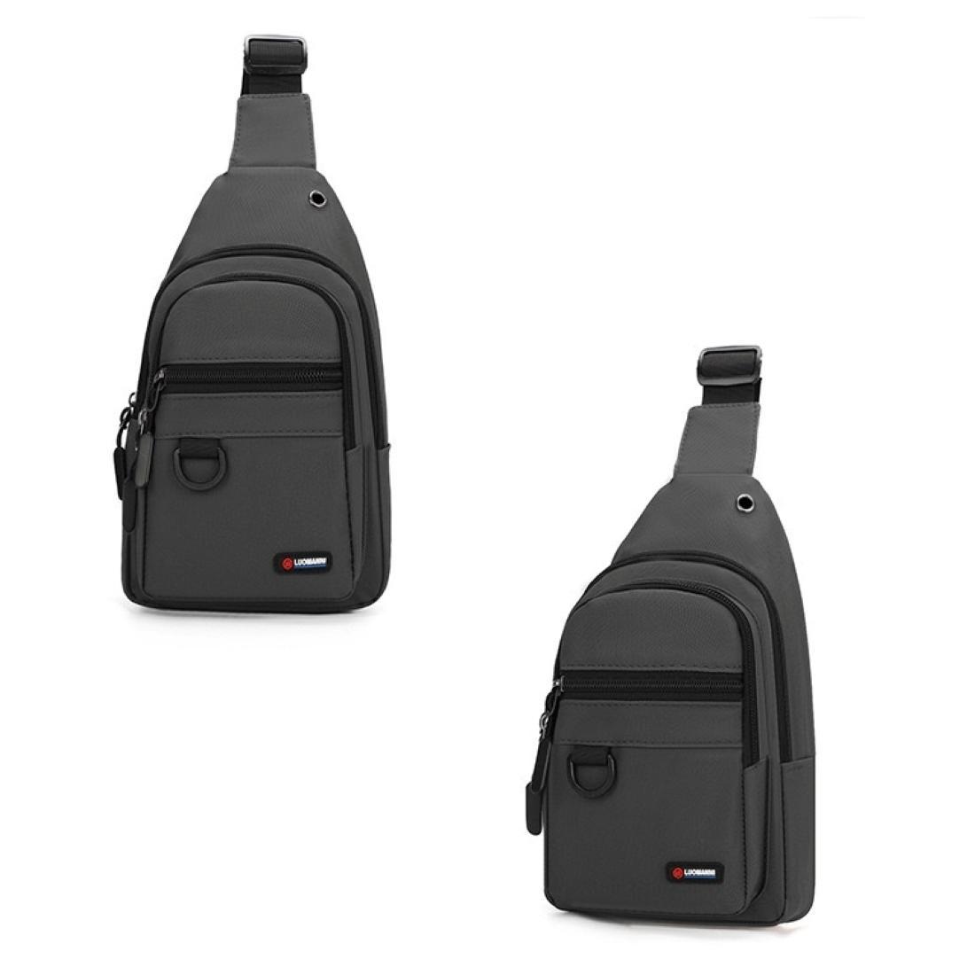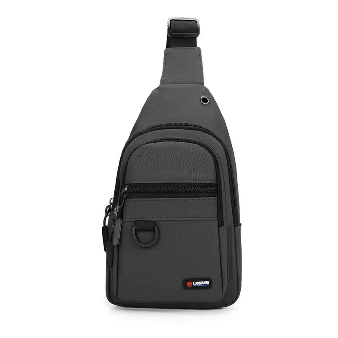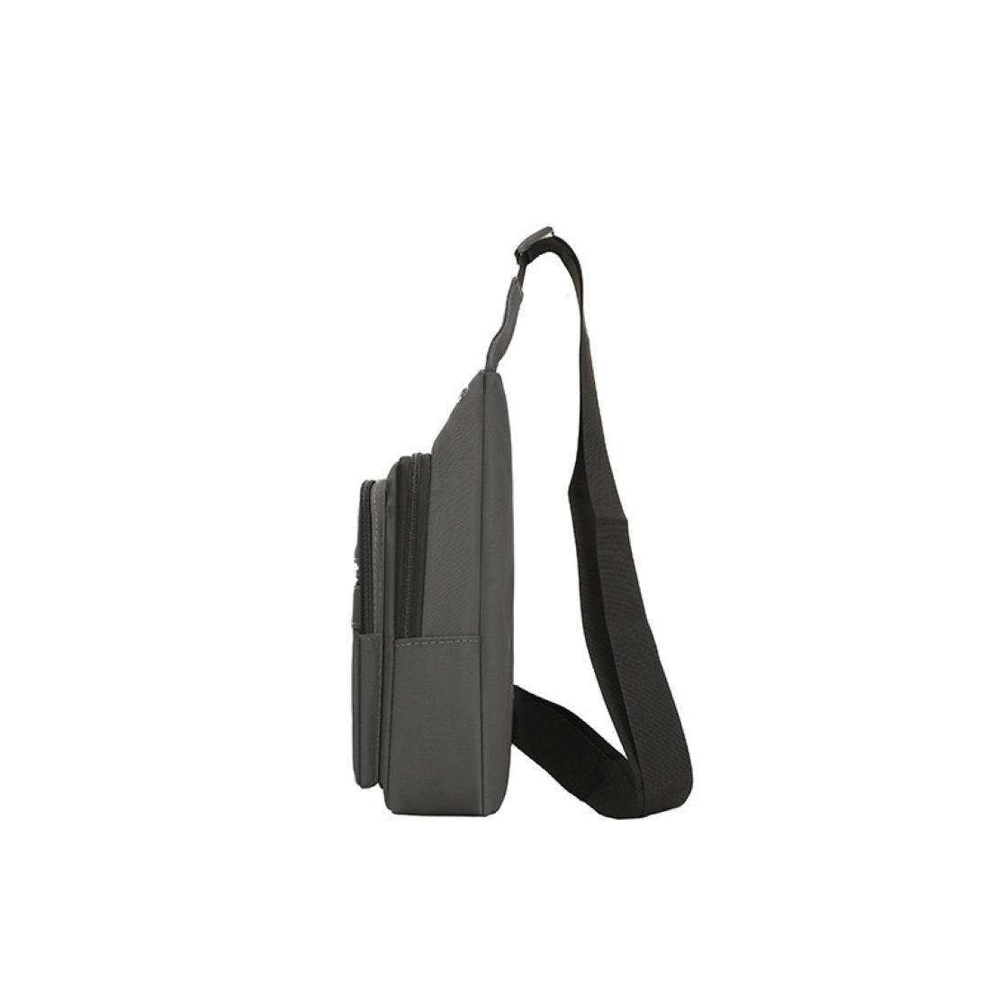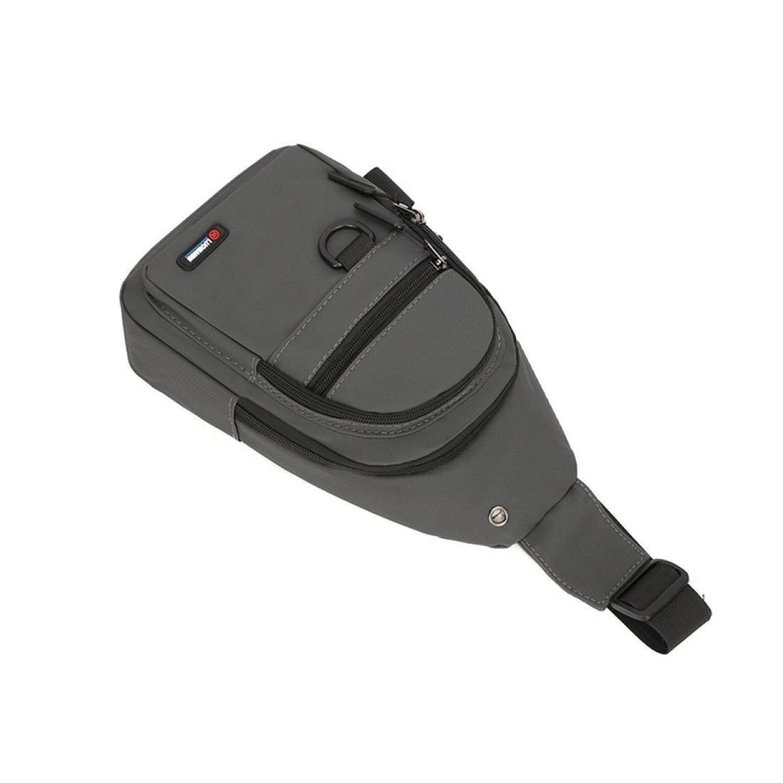 Сумка слінг через плече чоловіча текстильна міська повсякденна водовідштовхуюча з отвором для навушників середня Confident ATN01-T-1068G Сірий