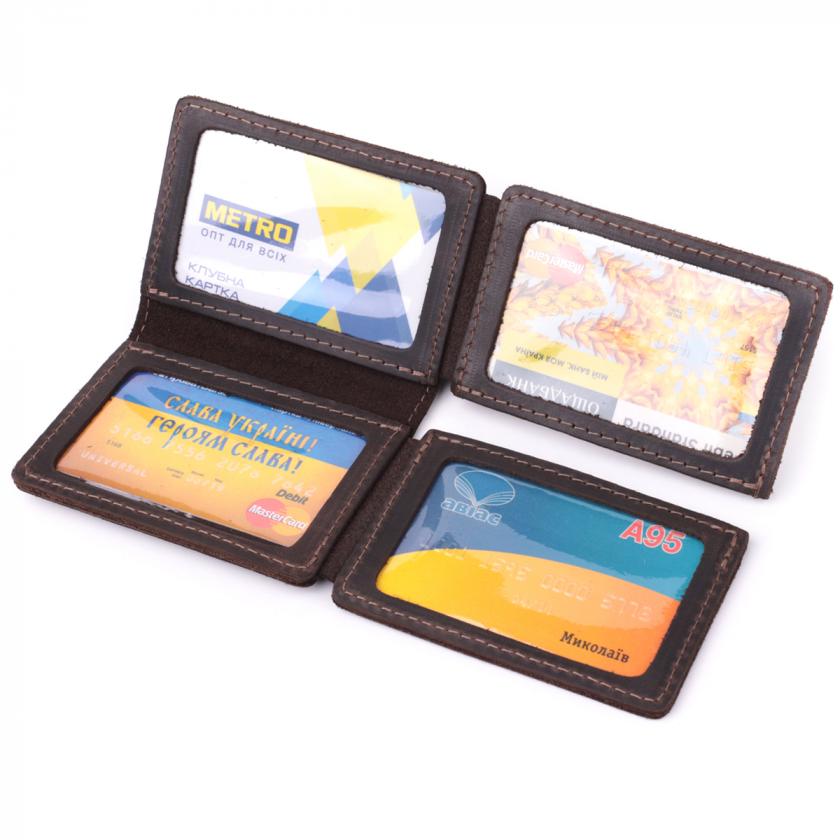 Удобная обложка для автодокументов для мужчин, в красивом темно-коричневом цвете, которая прошита светлой нитью по краям, что придает изделию лаконичности и стиля. Аксессуар изготовлен из высококачественной натуральной кожи Crazy Horse, которая известна всем своей прочностью и эксклюзивностью. Состоит изделие из пяти карманов, четыре из которых под пленкой и одного накладного кармана, снаружи на тыльной стороне. Такая обложка просто необходимый аксессуар для Вашего максимального комфорта в повседневной жизни.