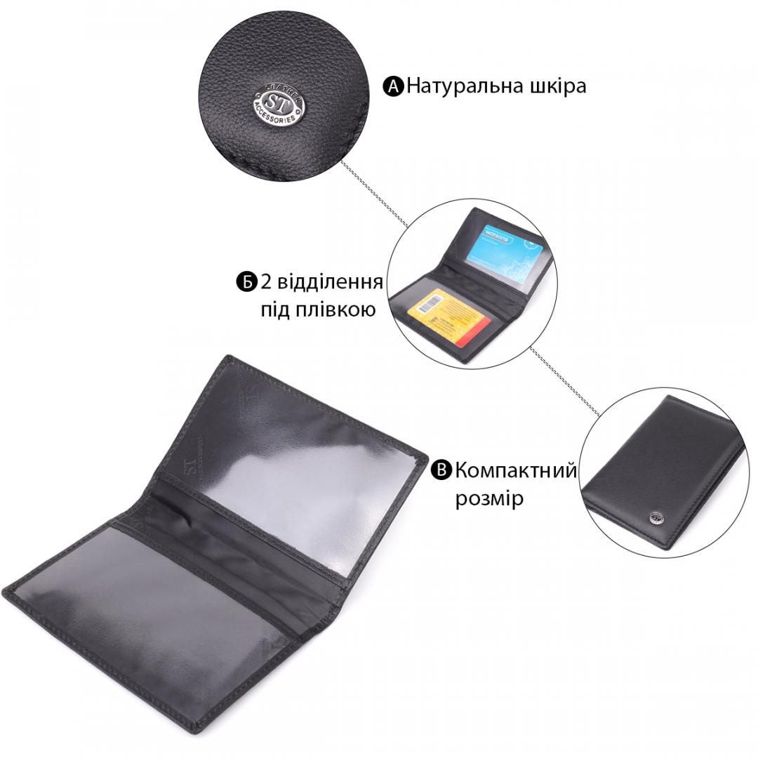 Характеристики: Стильная обложка на паспорт универсального формата из натуральной кожи ST Leather 23078 Черный