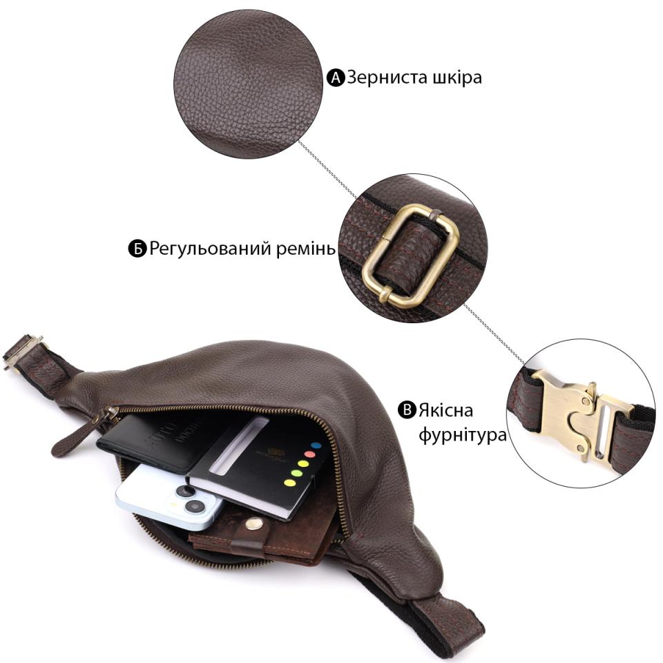 Характеристики: Стильная сумка бананка из зернистой натуральной кожи Shvigel 23146 Коричневый