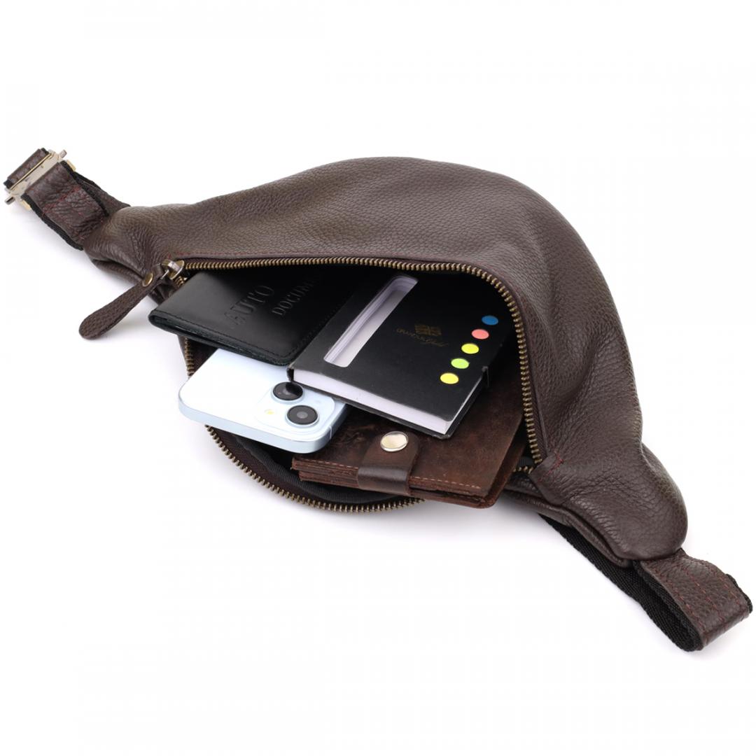 Стильная сумка бананка из зернистой натуральной кожи Shvigel 23146 Коричневый
