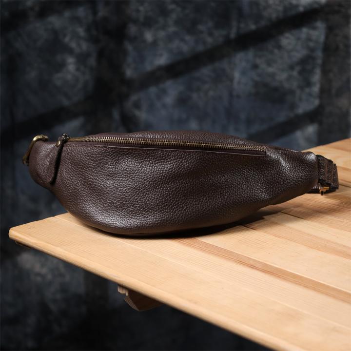 Отзывы: Стильная сумка бананка из зернистой натуральной кожи Shvigel 23146 Коричневый