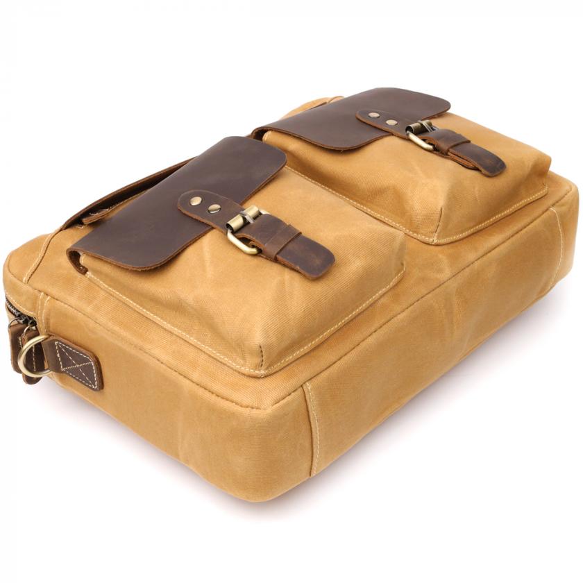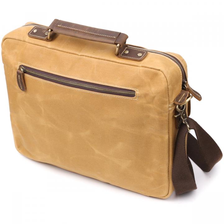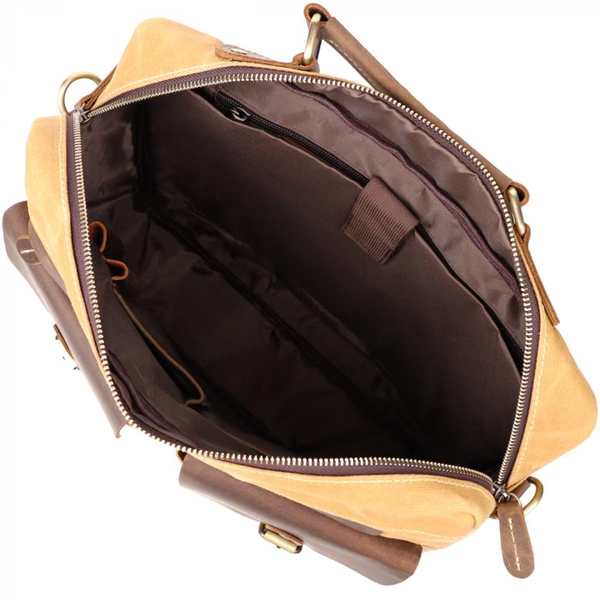 Характеристики: Стильный портфель из качественного текстиля из кожаными вставками Vintage 20874_1 Светло-коричневый