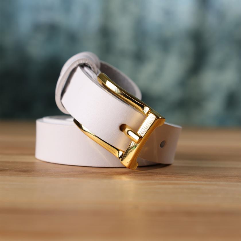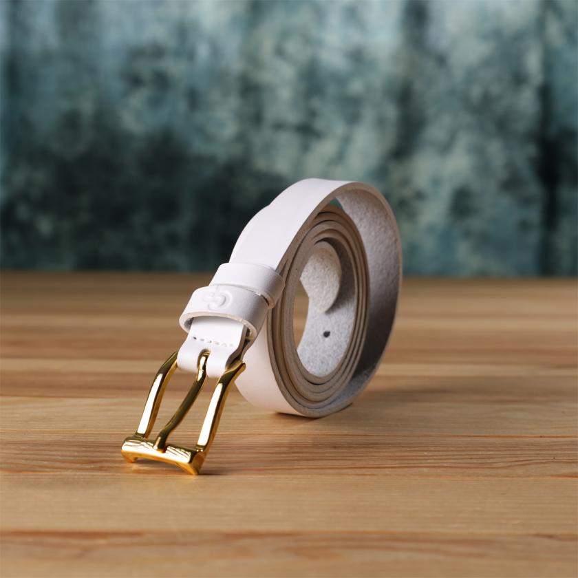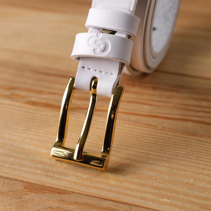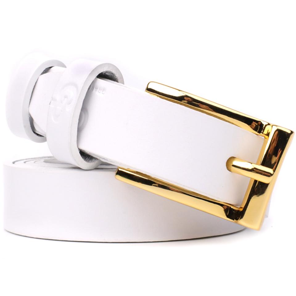 Отзывы: Стильный тонкий кожаный ремень для женщин GRANDE PELLE 22948 Белый