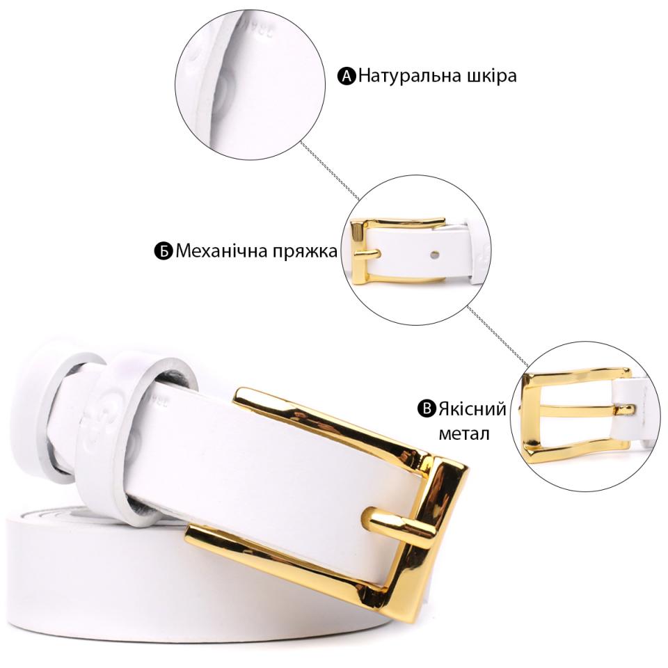 Характеристики: Стильный тонкий кожаный ремень для женщин GRANDE PELLE 22948 Белый