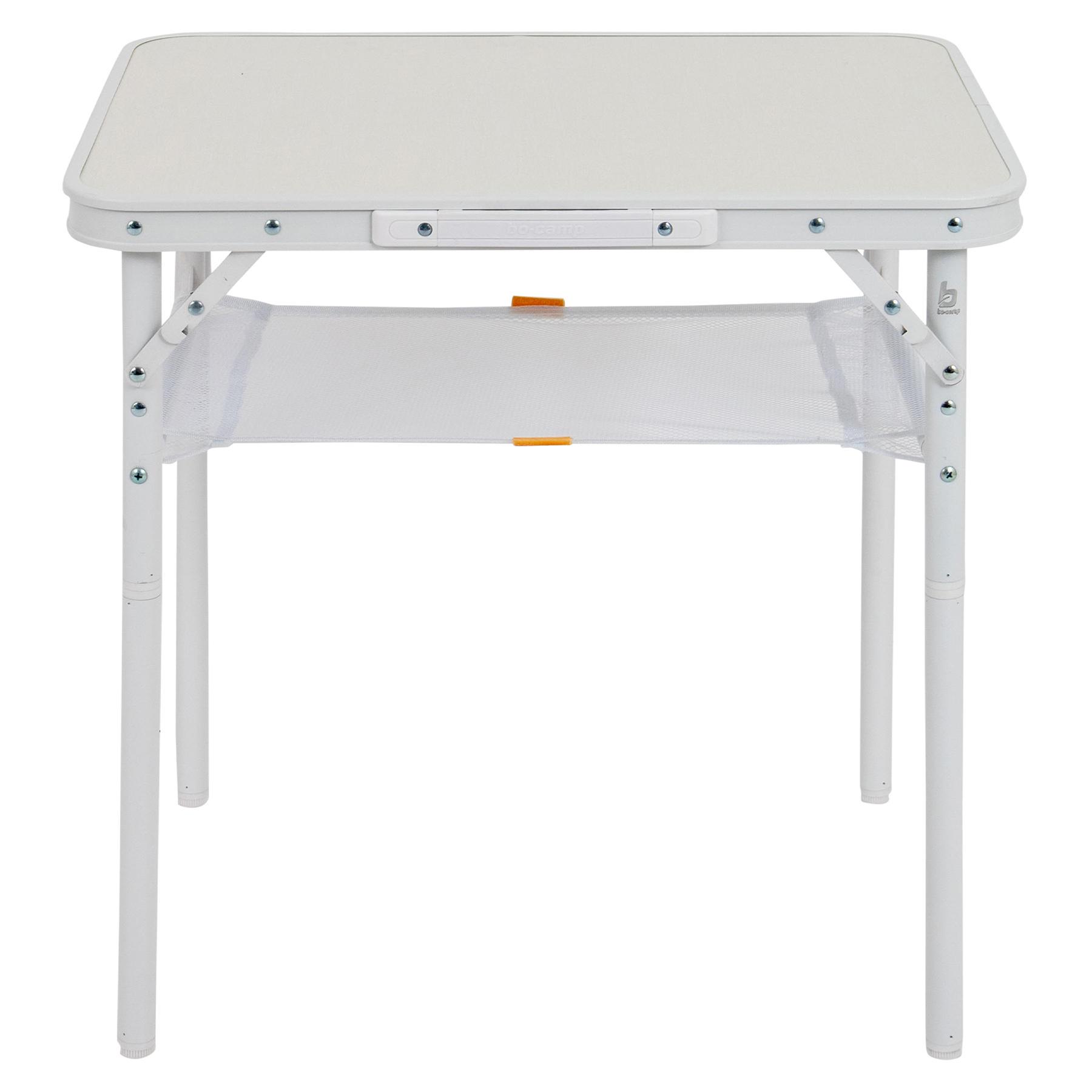 Міцний алюмінієвий каркас забезпечує стійкість, а ніжки з регулювальними гвинтами дозволяють встановлювати стіл навіть на нерівній поверхні. Висоту можна налаштувати на два рівні — 25 або 60 см, що робить його зручним як для сидіння, так і для приготування їжі.