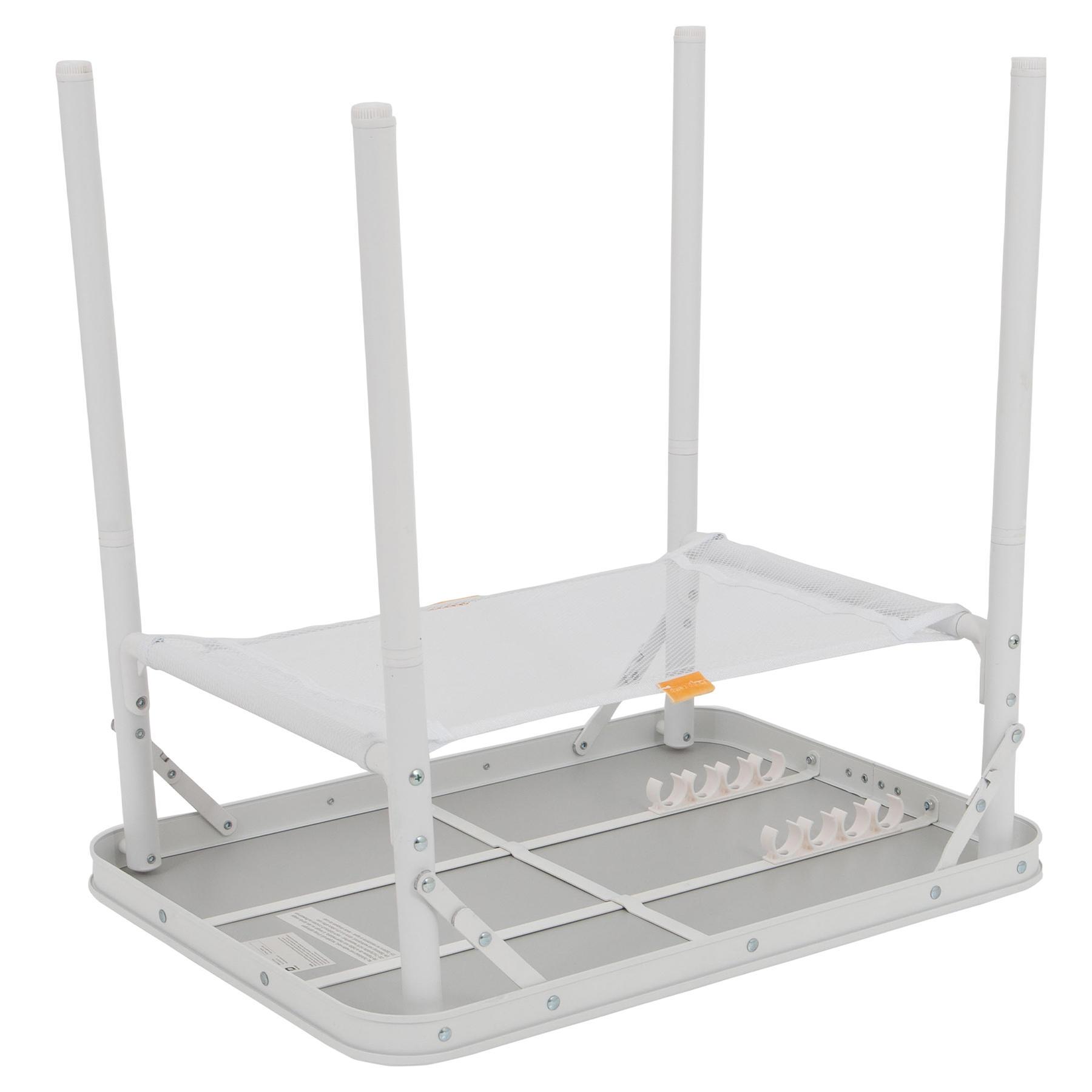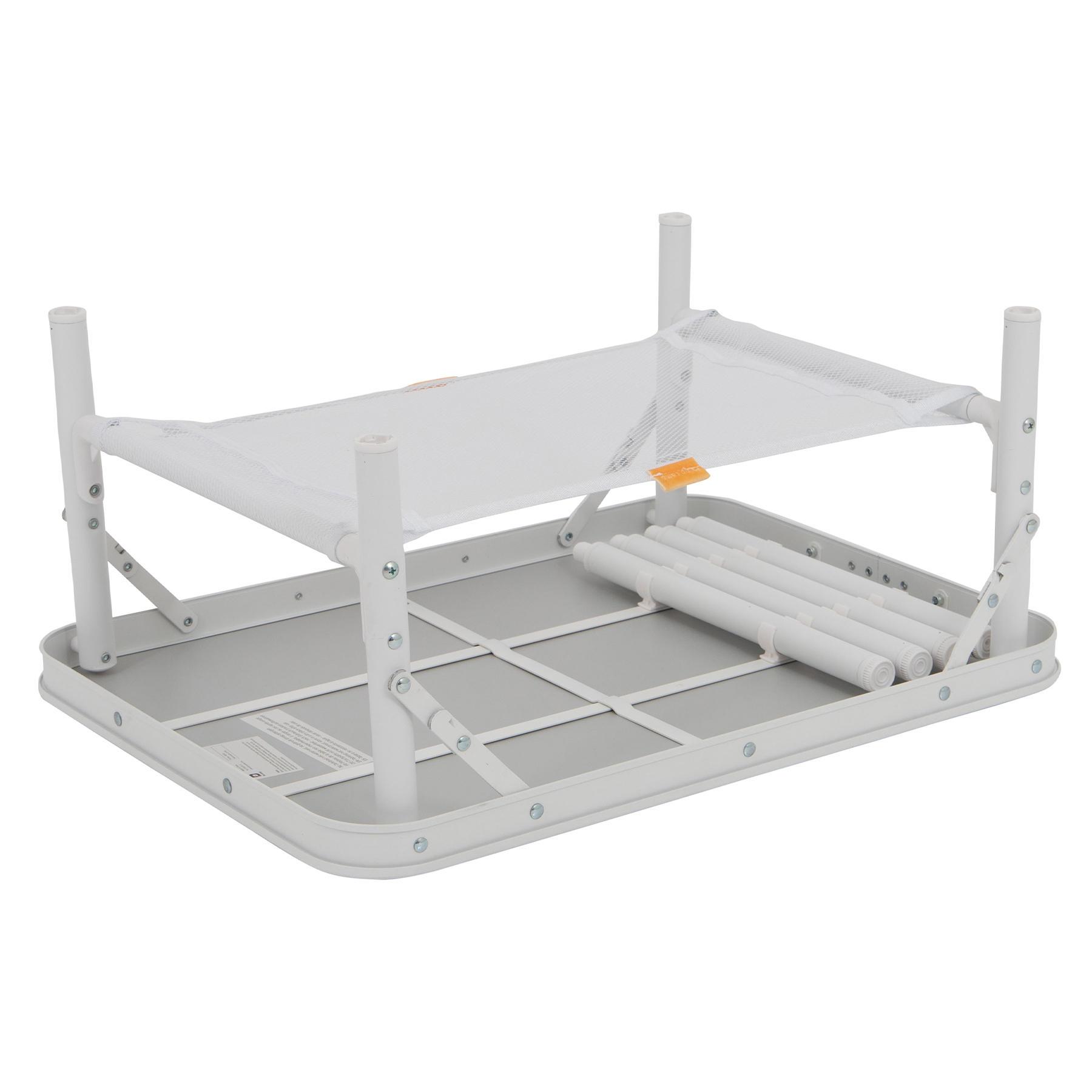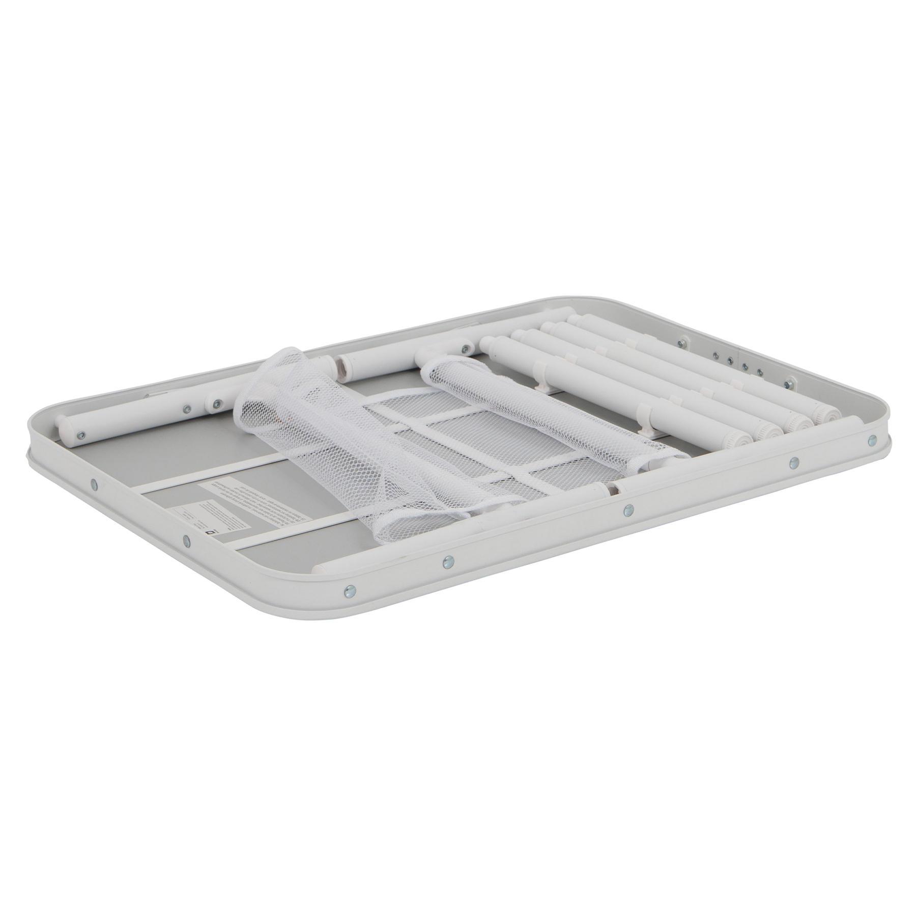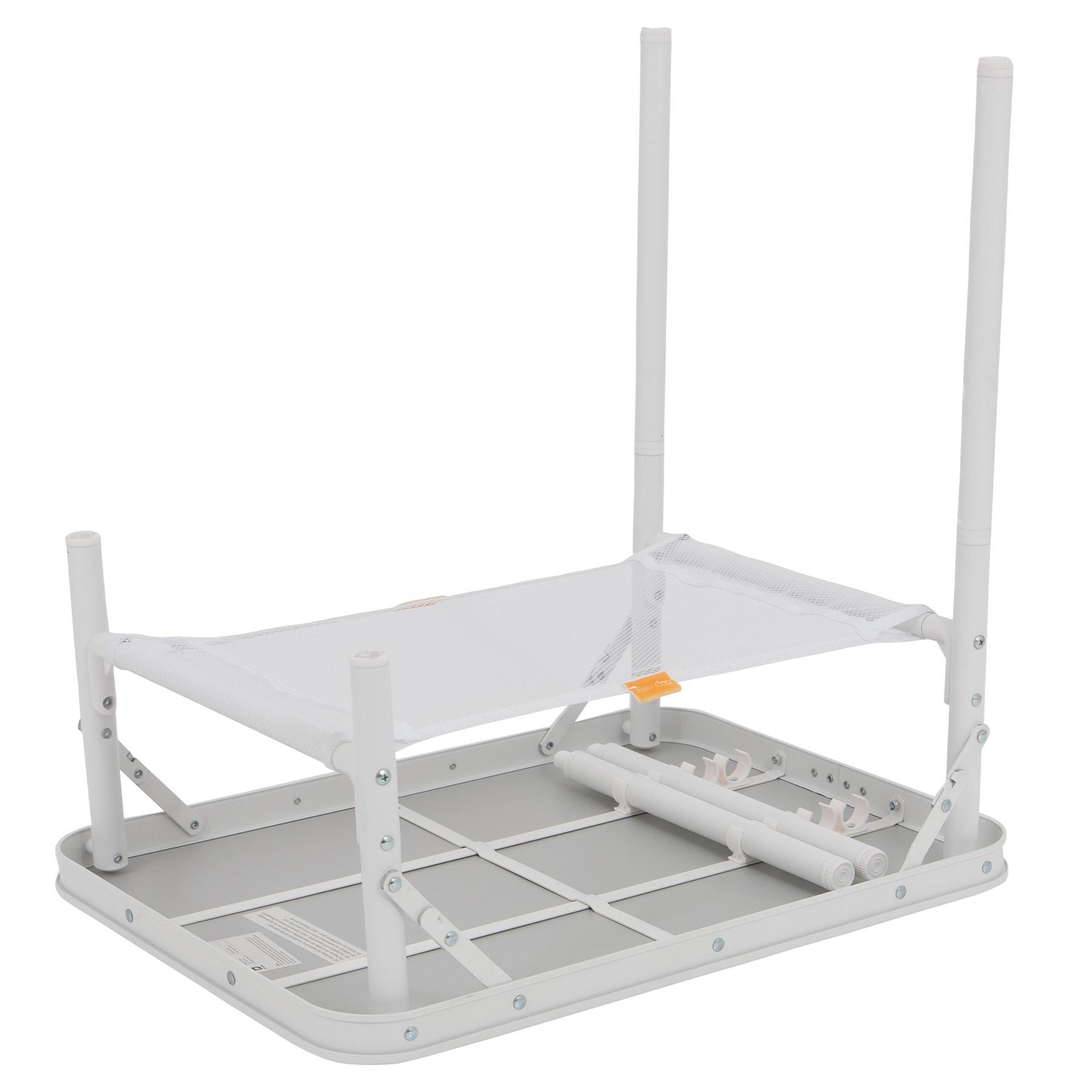 Під стільницею розташована сітчаста поличка для зберігання дрібниць. Завдяки знімним ніжкам стіл легко транспортується й займає мінімум місця в складеному вигляді. Для зручного перенесення передбачена ручка.