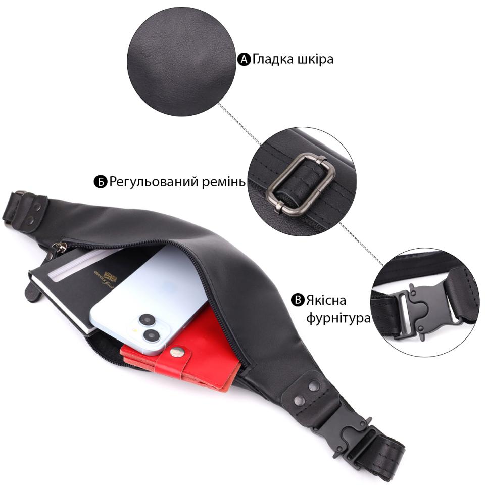 Характеристики: Сумка бананка для мужчин из гладкой натуральной кожи Shvigel 23134 Черный