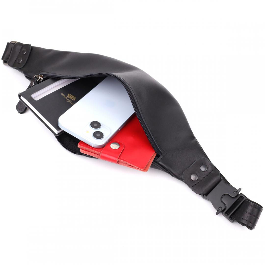 Описание: Сумка бананка для мужчин из гладкой натуральной кожи Shvigel 23134 Черный