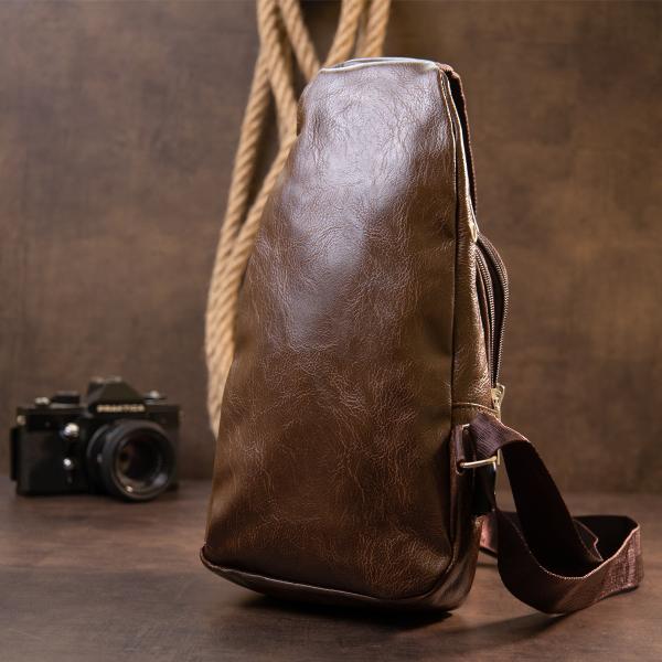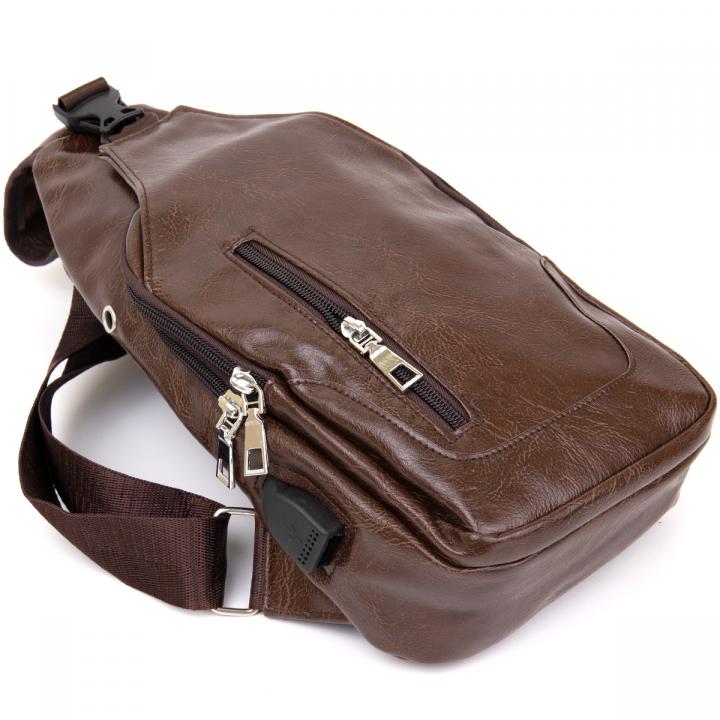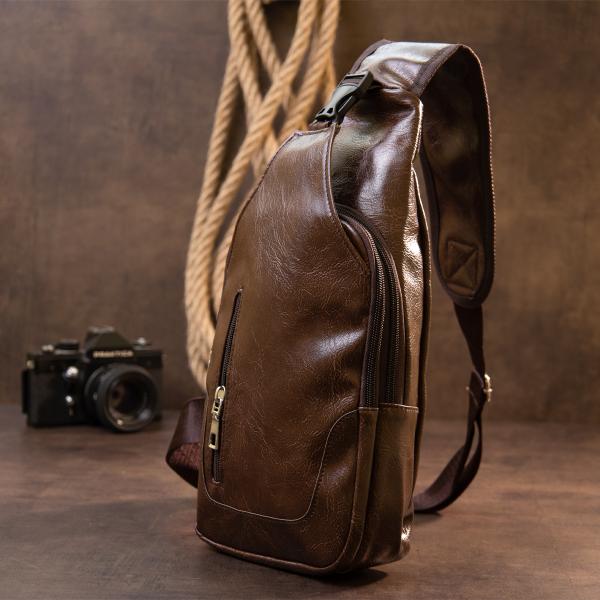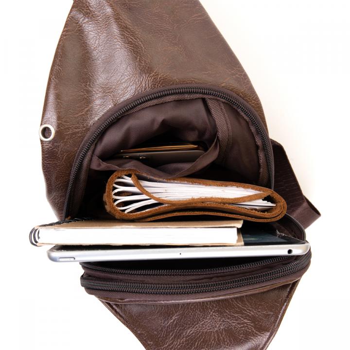 Очень компактная сумка из качественного кожзама коричневого цвета темного тона. Идеальная сумка для ежедневного использования и поездок. Сумка вместительная и очень эргономичная. Изделие продумано с учетом всех тенденций под практичного современного мужчину. С сумкой через плечо все ваши личные вещи будут в безопасности и перед вашими глазами. Функционал и расположение карманов данной сумки делает более легким доступ к вашим личным вещам. Данная модель имеет достаточно карманов для того чтобы разложить все ваши вещи в полном порядке и вместить в нее по-максимуму. Сумка через плечо станет прекрасным подарком для ваших близких.