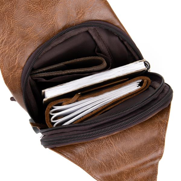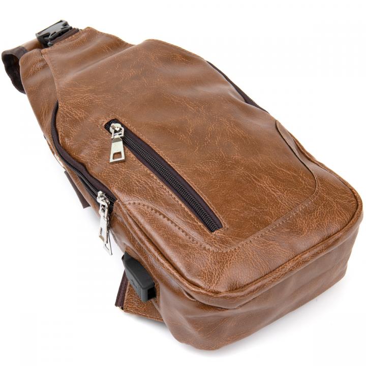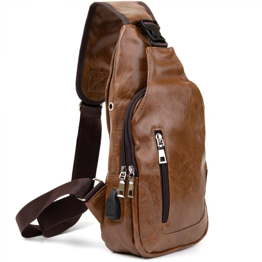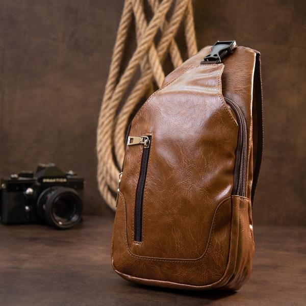 Очень компактная сумка из качественного кожзама коричневого цвета светлого тона. Идеальная сумка для ежедневного использования и поездок. Сумка вместительная и очень эргономичная. Изделие продумано с учетом всех тенденций под практичного современного мужчину. С сумкой через плечо все ваши личные вещи будут в безопасности и перед вашими глазами. Функционал и расположение карманов данной сумки делает более легким доступ к вашим личным вещам. Сумка через плечо станет прекрасным подарком для ваших близких.