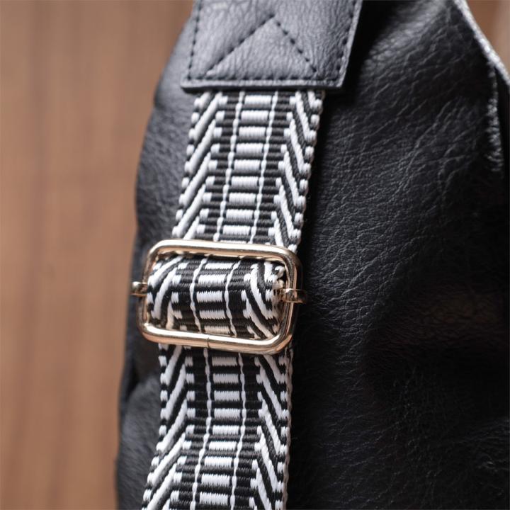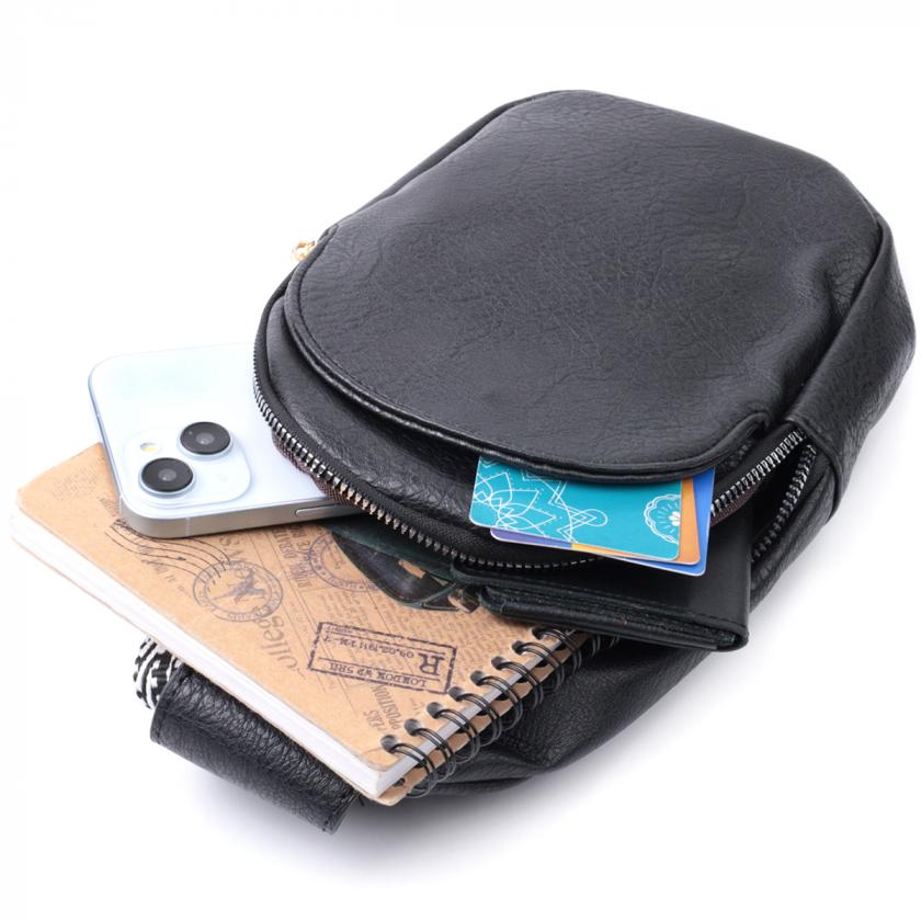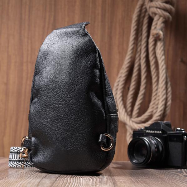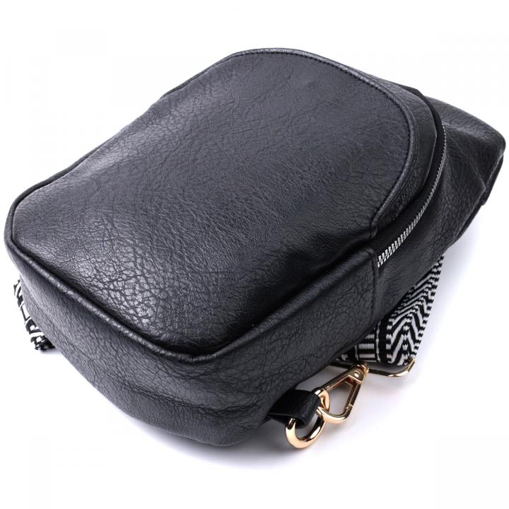 Сумка для женщин через плечо из экокожи с акцентом на текстильную лямку Vintage 22781 Черный