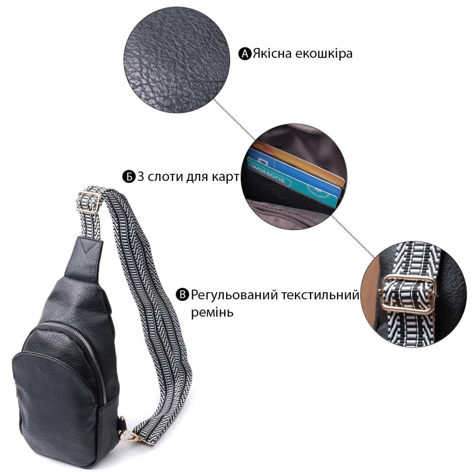 Описание: Сумка для женщин через плечо из экокожи с акцентом на текстильную лямку Vintage 22781 Черный