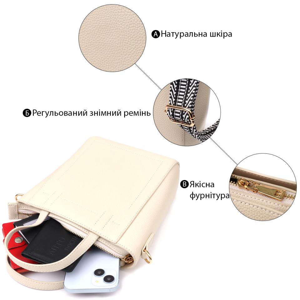 Описание: Сумка для женщин из натуральной кожи с модным трапециевидным кроем Vintage 22917 Белый