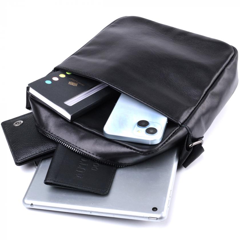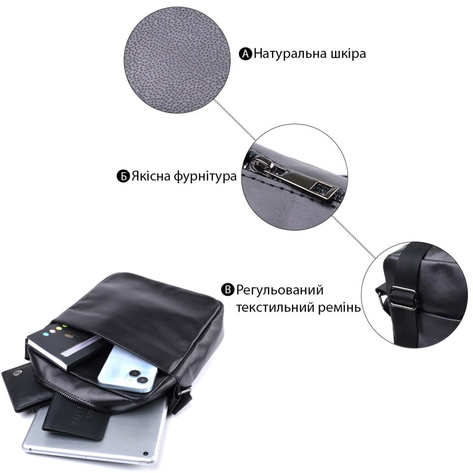 Характеристики: Сумка для мужчин через плечо из глянцевой натуральной кожи Shvigel 22849 Черная