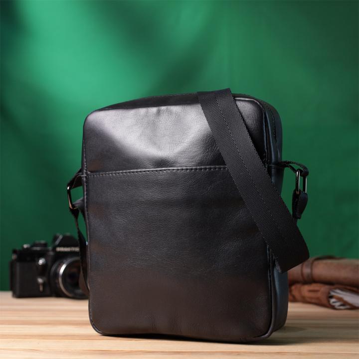 Отзывы: Сумка для мужчин через плечо из глянцевой натуральной кожи Shvigel 22849 Черная
