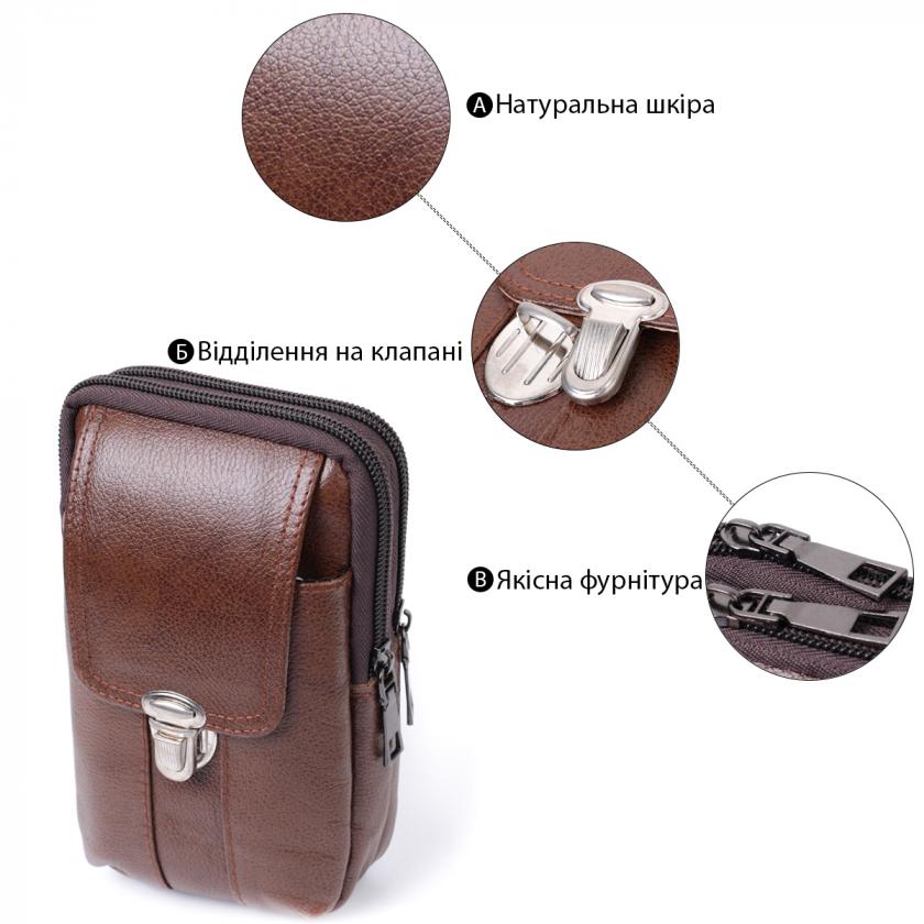 Характеристики: Сумка для мужчин на два отделения из натуральной кожи Vintage 22738 Коричневый