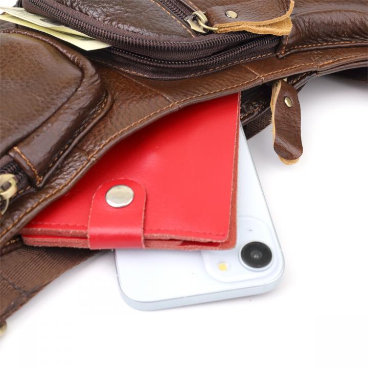 Эта кожаная сумка через плечо с большим количеством карманов — универсальный аксессуар для активной жизни, который сочетает в себе удобство, стиль и качество.
