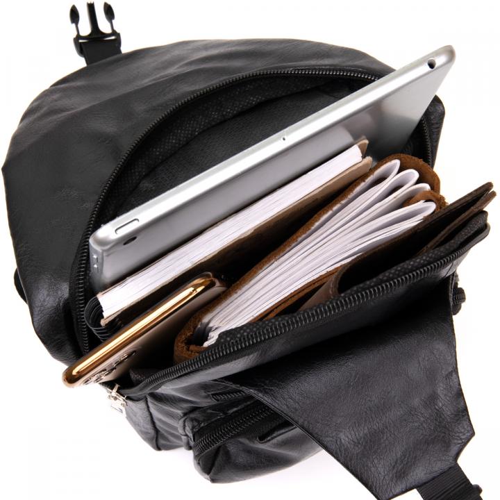 Идеальная сумка для ежедневного использования и поездок. Сумка тонкая и очень эргономичная. Изделие выполнено из кожзаменителя и продуманно с учетом всех тенденций под практичного современного мужчину. Сумка изготовлена в черном классическом цвете. С кросс боди все ваши личные вещи будут в безопасности и перед вашими глазами. Модель можно назвать за свою функциональность анти-вор. Дизайн сумки обеспечивает вам легкий доступ к вашим личным вещам. Функциональность сумки на высшем уровне. Уверены что вы останетесь довольны данной моделью. В сумке также имеется вход USB и шнур для зарядки. Сумка дополнена текстильным ремешком через плечо. Сумка кросс станет прекрасным подарком для ваших близких.