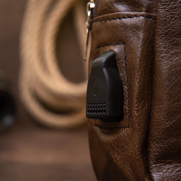 Идеальная сумка для ежедневного использования и поездок. Сумка тонкая и очень эргономичная. Изделие выполнено из кожзаменителя и продуманно с учетом всех тенденций под практичного современного мужчину. Аксессуар выполнен в коричневом практичном цвете. С такой моделью все ваши личные вещи будут в безопасности и перед вашими глазами. Дизайн сумки обеспечивает вам легкий доступ к вашим личным вещам. Функциональность сумки на высшем уровне. Уверены что вы останетесь довольны данной моделью. В сумке также имеется вход USB и шнур для зарядки. Сумка дополнена текстильным ремешком через плечо. Сумка кросс станет прекрасным подарком для ваших близких.