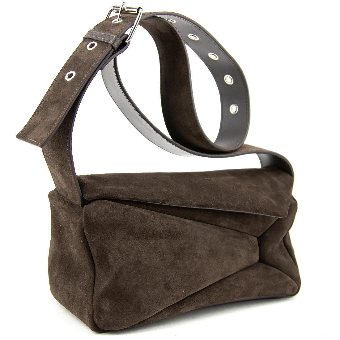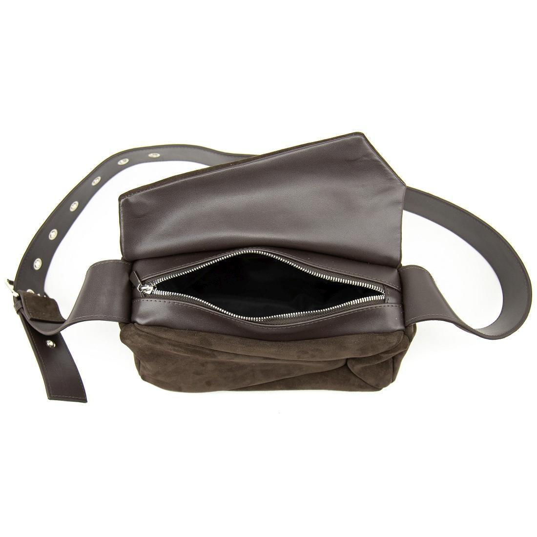 Наплечный длинный ремешок из кожи регулируется по длине.