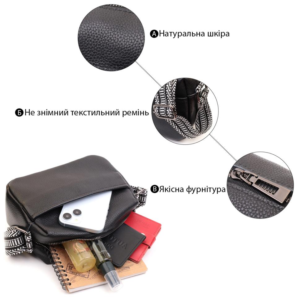 Характеристики: Сумка на одно отделение в классическом цвете из натуральной кожи Vintage 22606 Черная