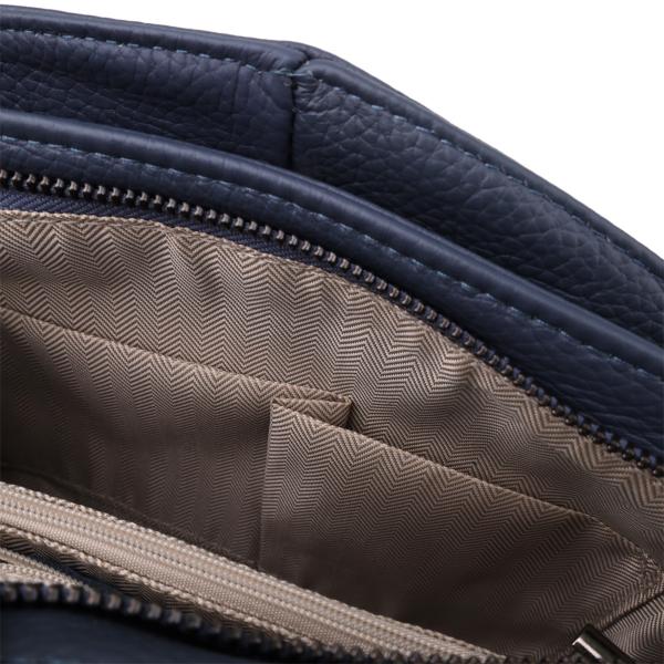 Многофункциональная сумка из натуральной кожи насыщенного синего цвета станет незаменимым аксессуаром для современной женщины. Ее универсальный дизайн и продуманная внутренняя организация делают модель идеальной как для повседневного использования, так и для деловых встреч или путешествий.