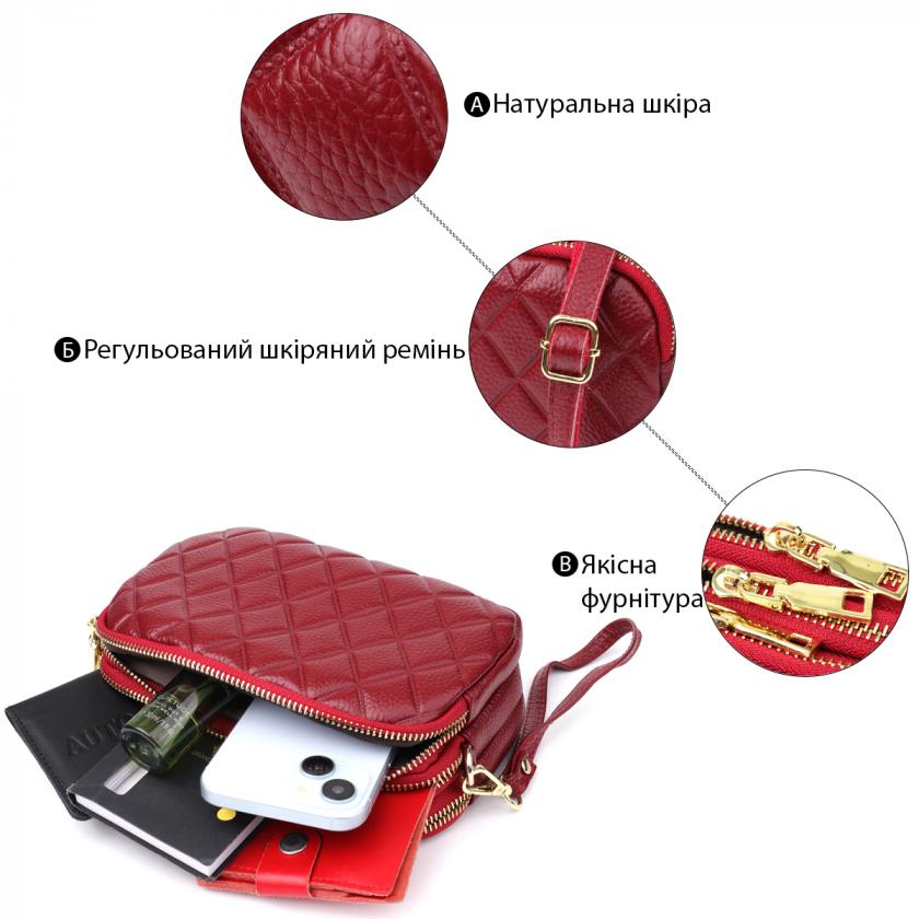 Описание: Сумка на три отделения для женщин из натуральной кожи Vintage 22889 Бордовый