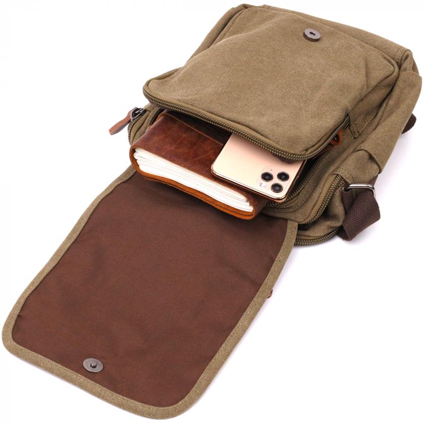 Сумка почтальонка на плечо из плотного текстиля Vintage 22228 Оливковый