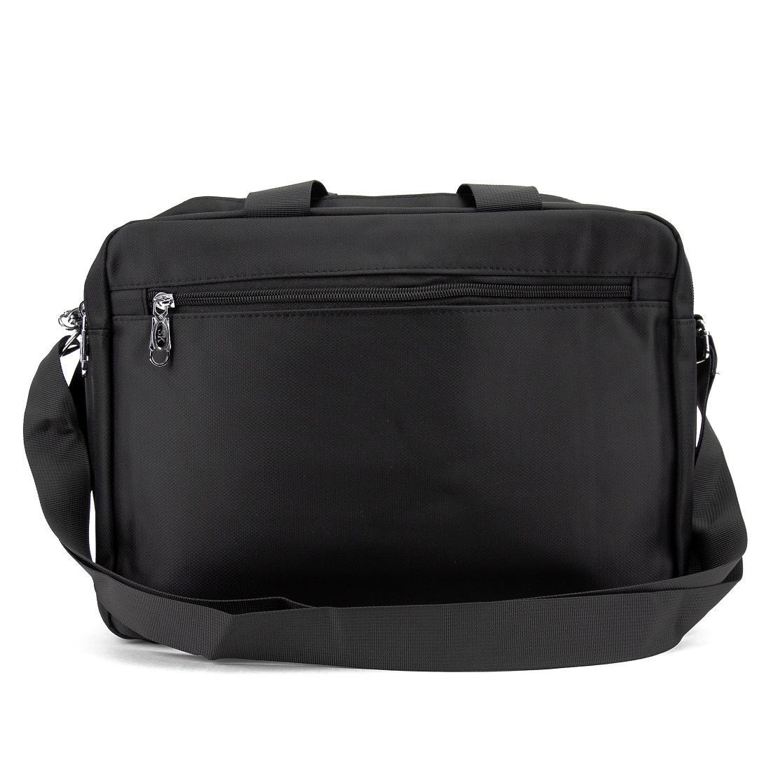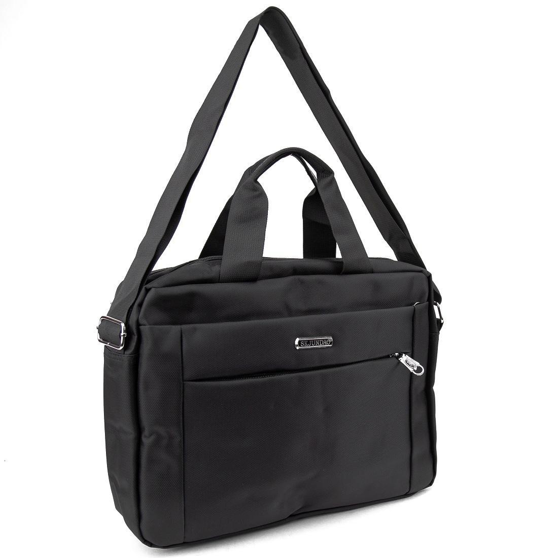 Мужская тканевая сумка для ноутбука изготовлена из текстиля черного цвета.