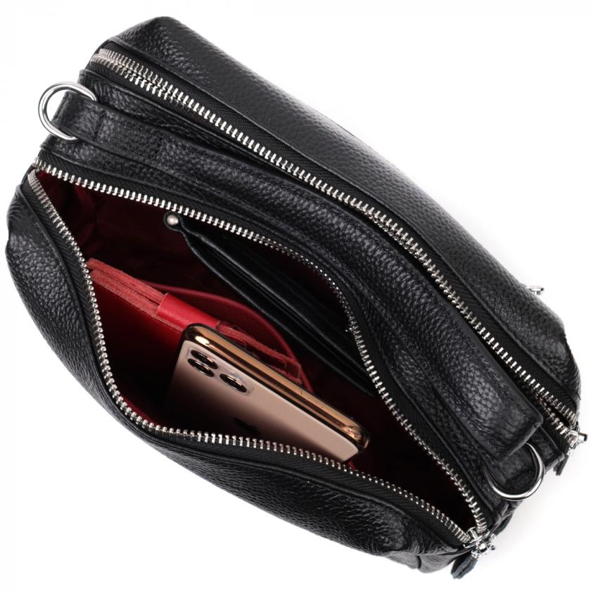 Характеристики: Сумка прямоугольная для женщин на два отделения из натуральной кожи Vintage 22343 Черная