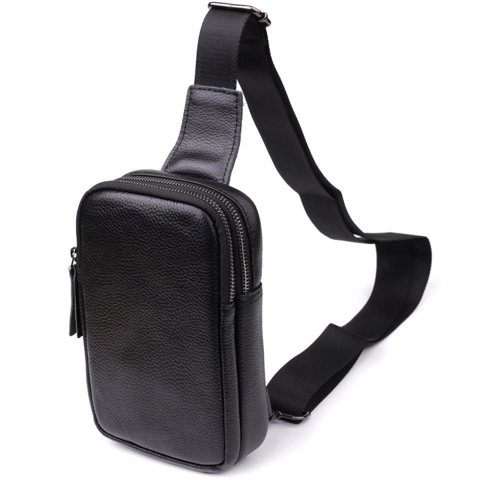 Сумка-слинг для мужчин из натуральной кожи Vintage 22955 Черный